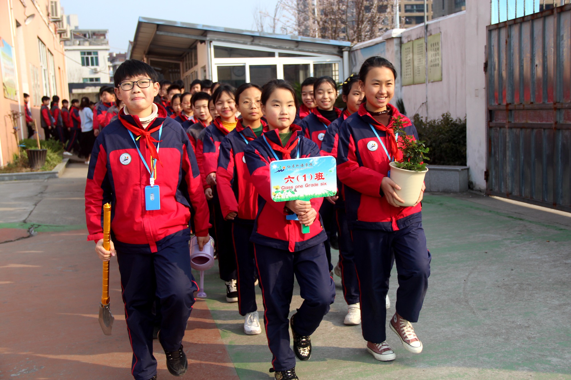 可不止這些呢。針對(duì)植樹節(jié),我們?cè)缭缇托袆?dòng)起來了。帶上工具,帶上期待,帶上對(duì)綠色的向往,我們來到了外語高中部,來了一次說走就走的種樹之旅。