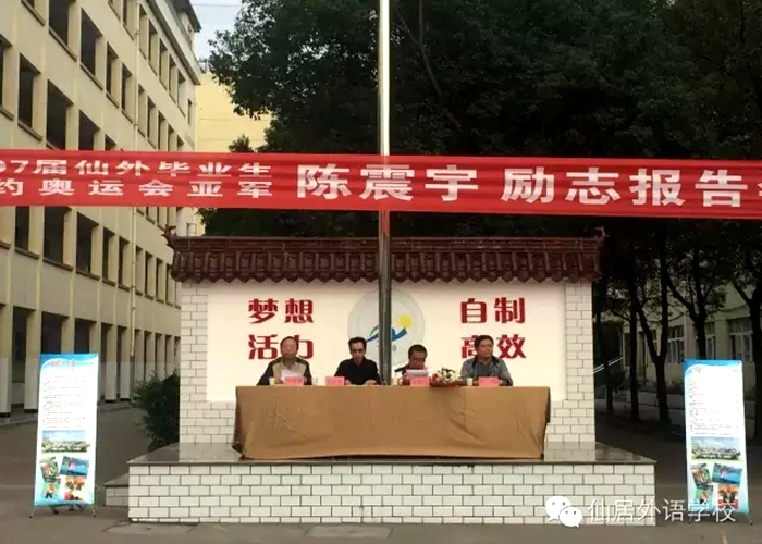 報告會由初中部政教副校長李朝輝主持。陳震宇從自身經(jīng)歷講起,由于先天殘疾與不幸,過去自己是一只丑小鴨,但是靠后天的努力與拼搏,改變了自己的命運(yùn),成功的站在了國際體育競技的領(lǐng)獎臺。陳震宇從生活中的點(diǎn)滴故事出發(fā),用大量真實(shí)感人的例子,震撼心靈的現(xiàn)場互動,激勵學(xué)弟學(xué)妹們要珍愛生命,熱愛生活,學(xué)會感恩、樹立理想、奮發(fā)圖強(qiáng),為自己、為仙外而努力學(xué)習(xí)。同時回憶起自己在仙外讀書的快樂生活。在場師生感受了一次心靈的震撼和靈魂的洗禮。陳震宇的勵志報告會幫助學(xué)生打開心扉,傾訴積蓄在心中的感恩之情,釋放積壓在大家心頭的困惑,現(xiàn)場氣氛高潮起伏,情動之處臺下鴉雀無聲,師生們真正從內(nèi)心深處感受到了努力與拼搏的激情。