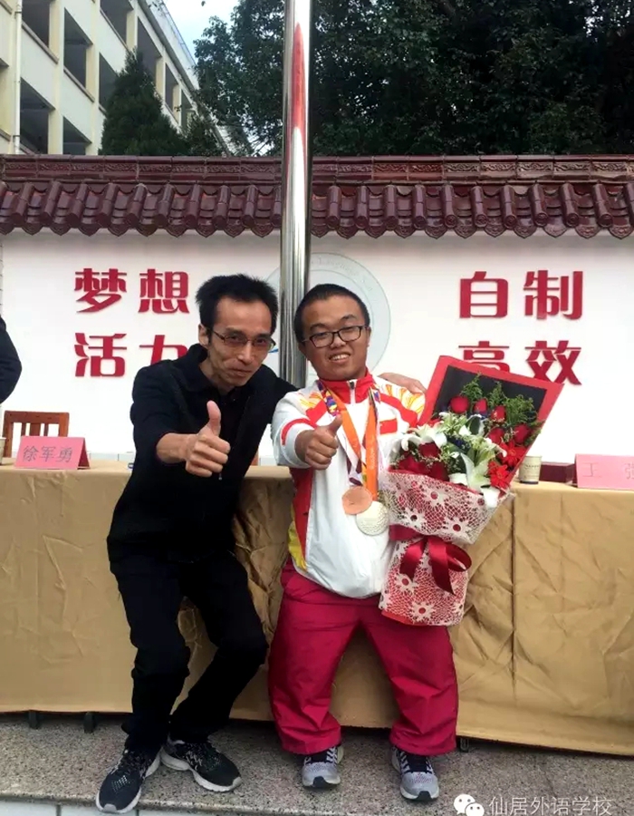 本站訊 11月2日,仙居外語學(xué)校2007屆畢業(yè)生、里約殘奧會鉛球亞軍陳震宇來母校做了一場以“昨天、今天、明天”為主題的大型勵志報告會,初中部3300多名師生聆聽了這場感人至深、催人奮進(jìn)的報告會。