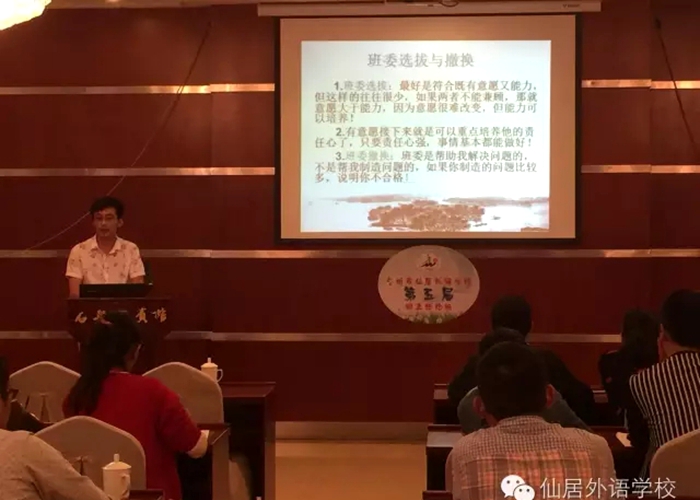 本站訊 10月28日,仙居外語學(xué)校初中部第五屆班主任論壇在風(fēng)景奇特壯麗、集天下山水奇觀于一體的天臺山風(fēng)景區(qū)石梁賓館隆重舉行。初中部校領(lǐng)導(dǎo)和50名班主任參加了論壇,初三年級18名班主任分別作了精彩發(fā)言。
