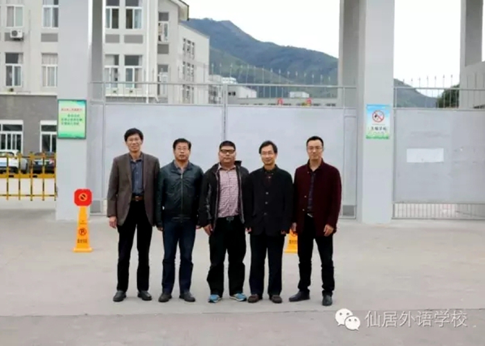 下午沈虎躍老師參觀外語高中部。陪同的有臺州市教研室蔣榮清老師、仙居縣教研室陳天捷老師、外語學??傂PiL周日升、高中部校長李江軍。