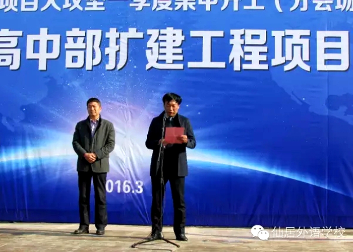 仙居縣人民副縣長李忠民政府代表縣政府對仙居縣外語學(xué)校高中部擴建工程的順利開工表示熱烈祝賀!他指出,民辦學(xué)校是教育事業(yè)發(fā)展的重要組成部分,在增加教育供給、滿足人民群眾多樣化、多層次的教育需求等方面發(fā)揮了重要作用。他希望縣外語學(xué)校和各重點建設(shè)項目學(xué)校能以此次項目集中開工為契機,乘勢而上,全力以赴加快項目建設(shè)進程。他要求縣教育局等項目責(zé)任部門要想工程之所想、急工程之所急,凝聚合力,高效履職,做好服務(wù)工作;項目建設(shè)單位要立足一流標(biāo)準(zhǔn),確保一流施工,爭取項目早竣工、早見效,為我縣實現(xiàn)教育事業(yè)的跨越發(fā)展和建設(shè)中國山水畫城市,做出新的更大的貢獻!