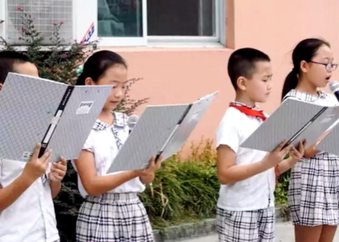 9月10日大課間,我們廣播站的同學(xué)們通過近半個(gè)月偷偷的練習(xí),在大會(huì)上為老師們獻(xiàn)上了詩歌朗誦。詩一般的語言,水一般的深情,在校園的上空久久飄蕩。朗誦一結(jié)束,學(xué)校的大屏幕上突然出現(xiàn)了孩子們的祝福視頻,原來這是孩子們背著老師偷偷錄的,他們的語言還是那么青澀,面對(duì)著鏡頭還有點(diǎn)拘謹(jǐn),可是老師們和底下的孩子們看著看著紅了眼眶。這就是所謂心意相通的愛吧。