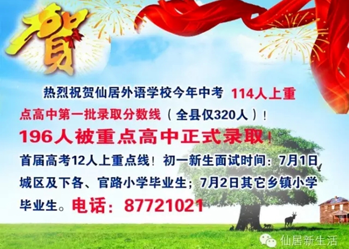 仙居新生活:熱烈祝賀外語學(xué)校196人被重點(diǎn)高中正式錄取