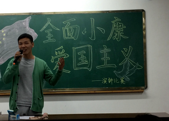 本次比賽我們邀請到五位評委老師,分別是黃金渠老師,陳征老師,吳真老師,裘學英老師和張麗玲老師。經過前期的認真準備,我們確保比賽的成功舉辦,當晚比賽現場先由主持人應鵬輝宣讀比賽相關事項,之后宣布比賽正式開始。選手依次上臺進行演講,每個選手都有屬于自己的風格,自己的特點,有屬于自身的愛國熱情。雖是不同的表現方式,所體現的卻是同一種情誼——那便是強烈的愛國情懷。對于選手們的精彩表現,評委老師們認真傾聽著,他們的眉頭時而蹙起,時而舒緩。面對評委老師的點評,選手們略微緊張,但仍富有激情與熱血。比賽進行得比較順利,一直到比賽結束......