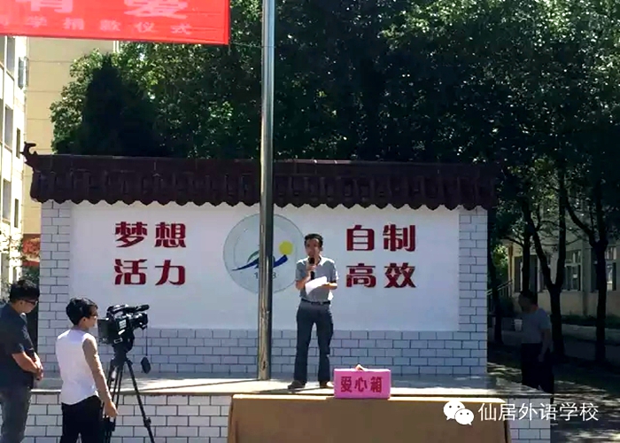 外語(yǔ)學(xué)校初中部校長(zhǎng)徐軍勇宣讀愛(ài)心捐款倡議書(shū)