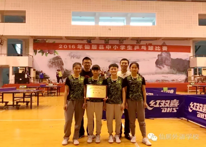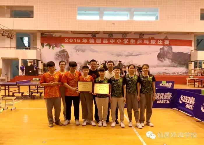 仙居外語學(xué)校乒乓球隊(duì)在比賽中發(fā)揚(yáng)“團(tuán)結(jié)合作、奮勇拼搏”的體育精神,努力打好每場比賽,斬獲女子團(tuán)體第一名,男子團(tuán)體也取得第四的優(yōu)異成績。