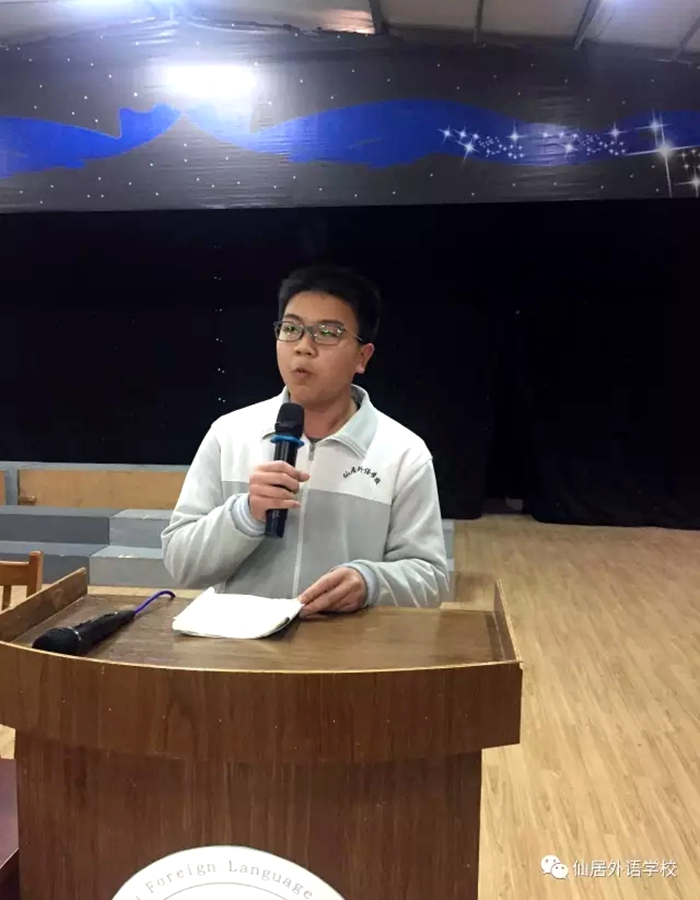 學(xué)生代表泮勁宇、吳諸珍在發(fā)言中表示要全力以赴,集中心力,讓夢想和信念在六月張開翅膀,拼搏一百天,讓雄心和智慧在六月閃出光芒,充分展示仙居外語學(xué)子奮發(fā)圖強(qiáng)的凌云壯志和續(xù)寫仙外輝煌的英雄豪氣。