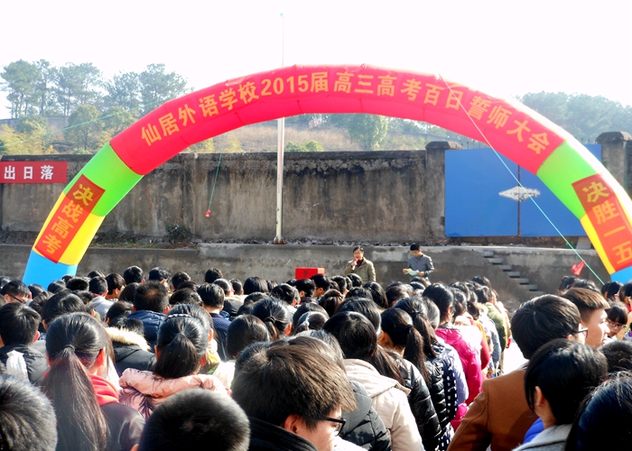 外語學校高三學生自從2012年步入高中校門,便奮發(fā)向上,努力拼搏。在全體領導師生的共同努力下,他們的成績已經(jīng)有了明顯的進步。為了進步一步激發(fā)學生們的斗志,讓他們能在最后一百天的學習過程中,能更有目標更有動力更有激情,學校領導特地舉辦了這次高三百日誓師大會。