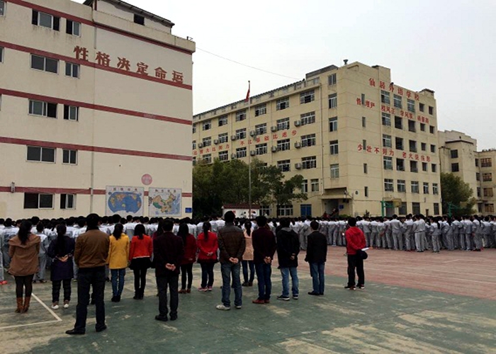 學(xué)校要求所有的科任老師到場,整齊排列,和學(xué)生一同參加升旗儀式。操場上,一排排整齊的學(xué)生、教師隊伍精神抖擻。在嘹亮的《出旗曲》中,國旗手邁著整齊、有力的步伐,手捧著鮮艷的國旗從隊伍后走向升旗臺。隨著雄壯的國歌,莊嚴(yán)的五星紅旗在徐徐升起。這將成為常規(guī),又將成為外語初中部亮麗的風(fēng)景線。