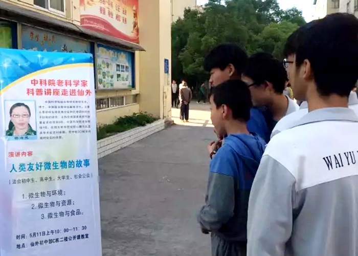 本站訊 5月11日,中科院老科學(xué)家科普演講團(tuán)走進(jìn)仙居外語(yǔ)學(xué)校,中國(guó)科學(xué)院微生物研究所研究員、中國(guó)微生物學(xué)會(huì)副秘書長(zhǎng)楊海花博士為同學(xué)們帶來以“人類友好微生物的故事”為主題的科普演講。八年級(jí)110名學(xué)生代表聆聽了講座。