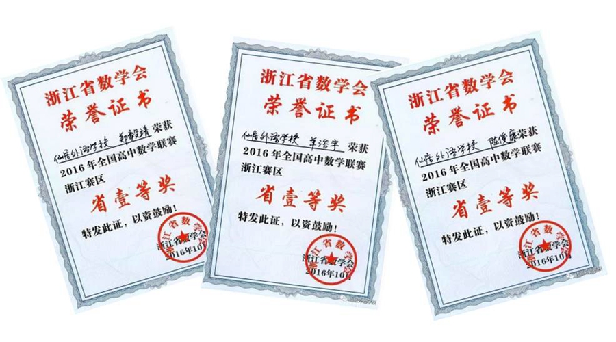 對于高中而言,數(shù)學(xué)的重要性毋庸置疑,外語學(xué)校連續(xù)多次請來浙江省內(nèi)各著名的高考專家、數(shù)學(xué)名師來校給我們的學(xué)生上課、講座。在學(xué)校的努力下近兩年數(shù)學(xué)成績有了顯著的提高,各種數(shù)學(xué)競賽捷報(bào)頻傳:2016-17學(xué)年我校獲全國高中數(shù)學(xué)聯(lián)賽浙江省一等獎(jiǎng)3人,浙江省數(shù)學(xué)競賽省一等獎(jiǎng)1人、二等獎(jiǎng)4人、三等獎(jiǎng)1人。