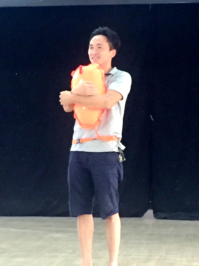 冬泳協(xié)會會員還現(xiàn)場給全體學(xué)生演示正確使用“跟屁蟲”救生設(shè)備。