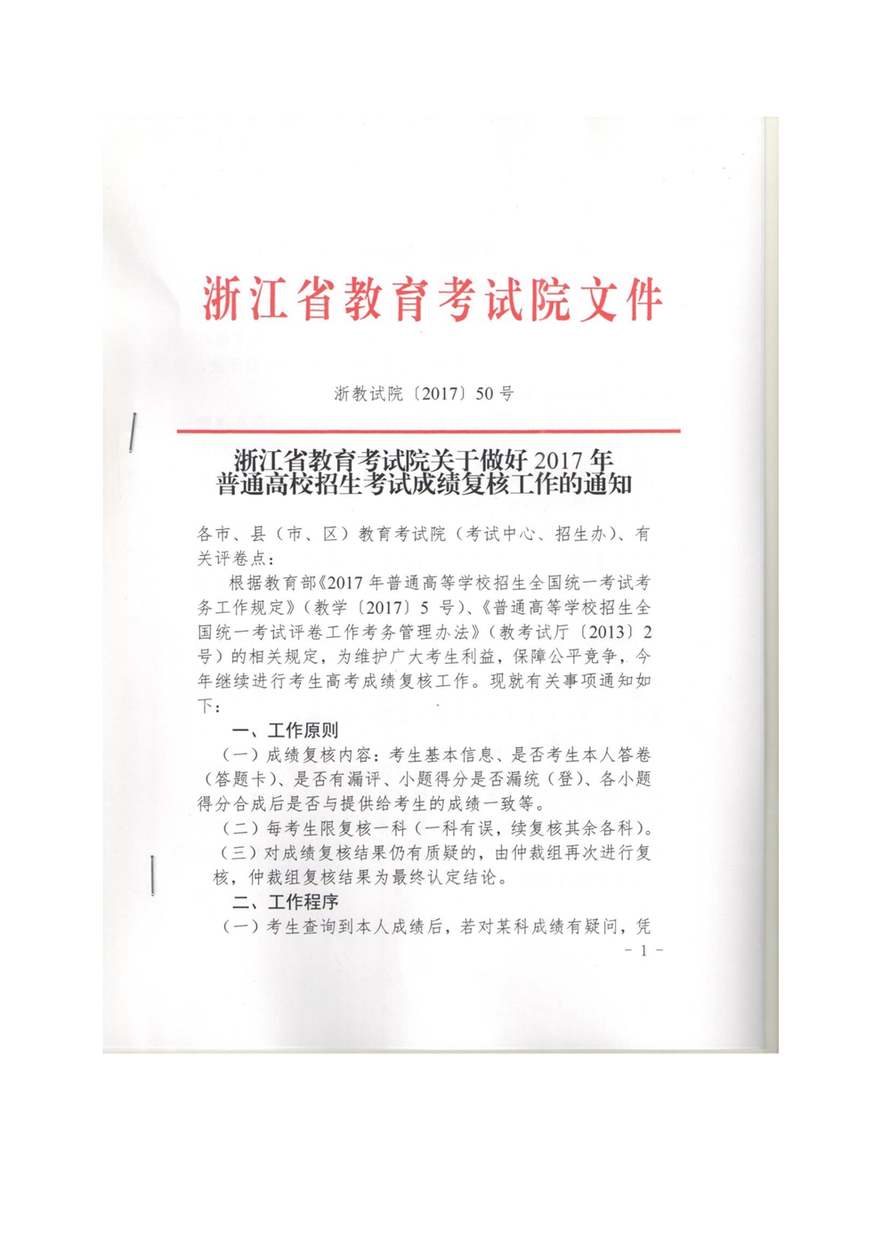 浙江省教育考試院關(guān)于做好2017年普通高校招生考試成績(jī)復(fù)核工作的通知.pdf