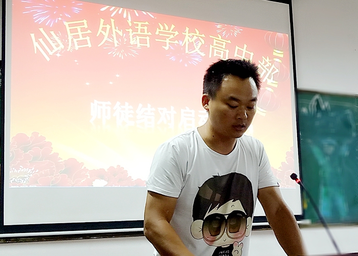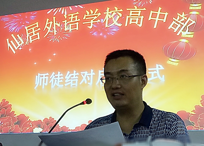 本站訊(www.ytzjfw.com) 為了充分發(fā)揮骨干教師、教學(xué)能手的示范和“傳、幫、帶”作用,加速新教師更好、更快地成長(zhǎng),推動(dòng)教師隊(duì)伍整體素質(zhì)的提升,以促進(jìn)學(xué)校的發(fā)展。8月24日晚7時(shí),仙居外語(yǔ)學(xué)校高中部第四屆“青藍(lán)工程”拜師會(huì)于新落成的行政樓三樓會(huì)議室成功舉行。新老教師近百人歡聚一堂,共同見(jiàn)證41對(duì)師徒“喜結(jié)良緣”。高中部李江軍校長(zhǎng)、教務(wù)處李世榮主任、政教處陳利華主任、教師專業(yè)發(fā)展中心鄒遠(yuǎn)義主任出席了儀式。會(huì)議由教師專業(yè)發(fā)展中心副主任張豐明老師主持,現(xiàn)場(chǎng)氣氛隆重而溫馨。