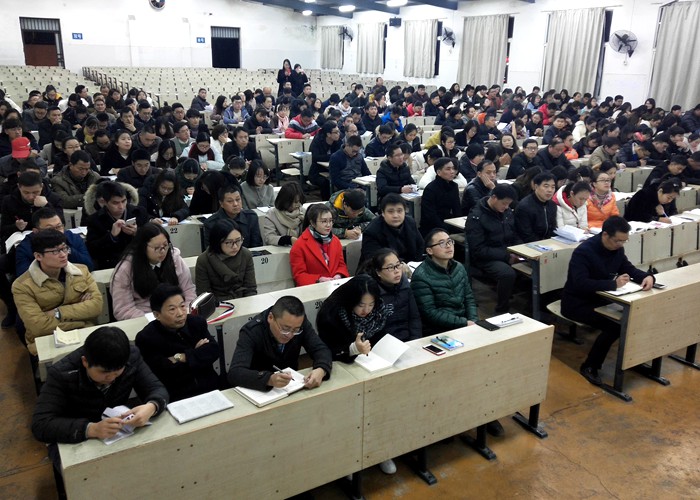 大會由執(zhí)行校長周澤安主持,中共仙居黨委宣傳部副部長項科學主講,外語小學部、初中部、高中部300多名教師聆聽了報告。