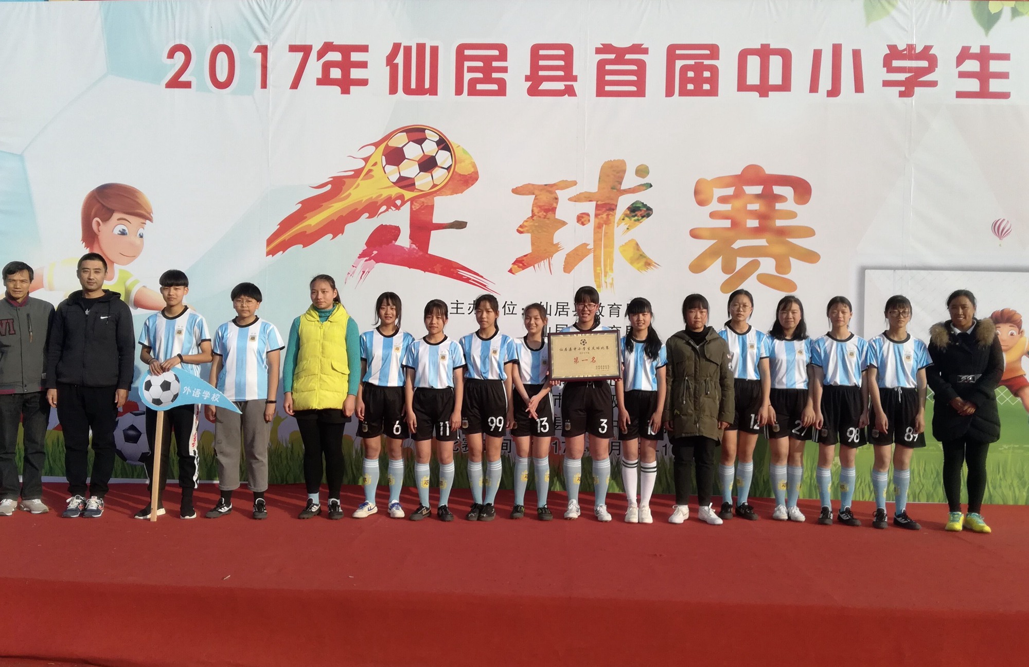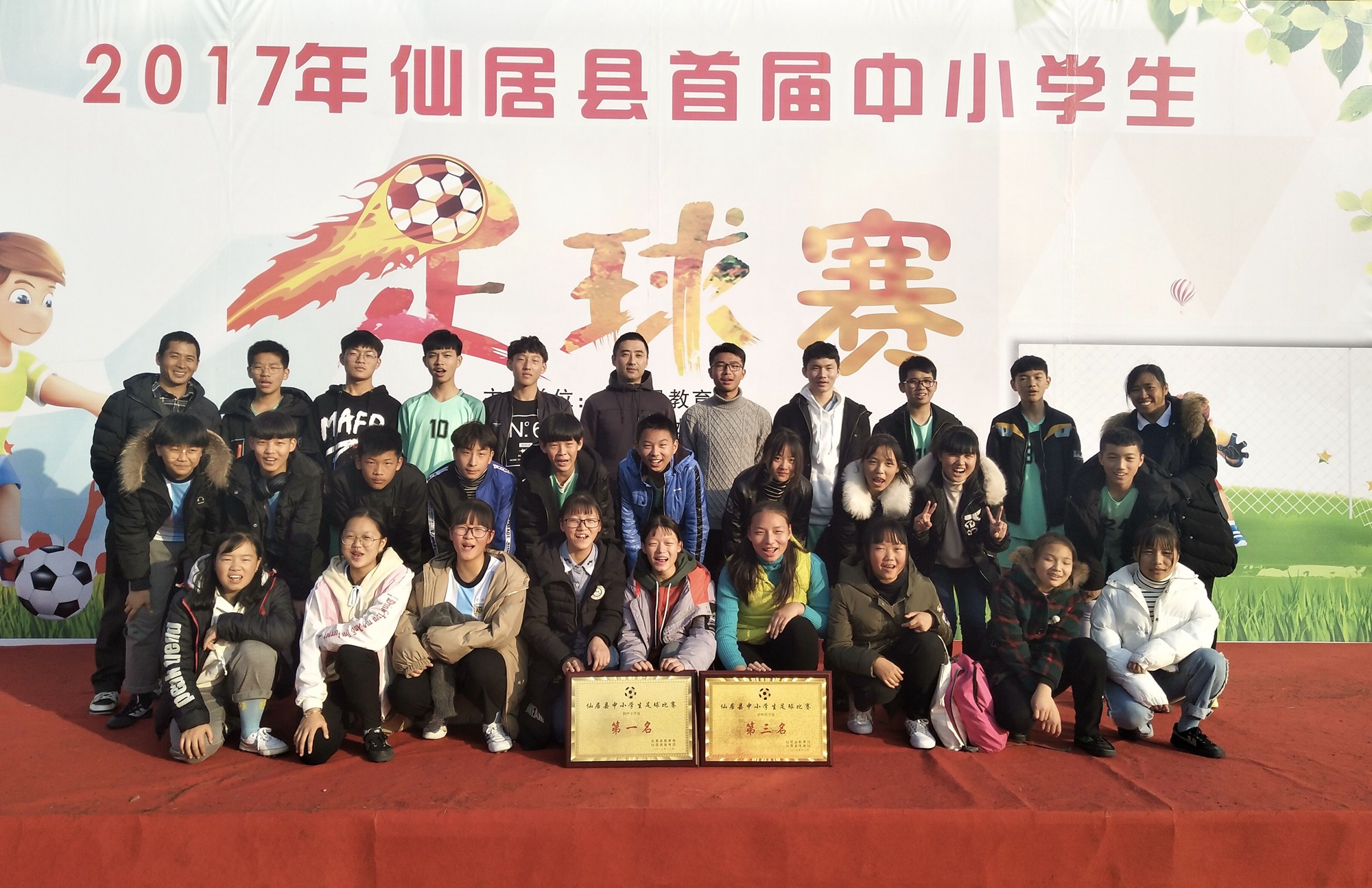 仙居外語(yǔ)學(xué)校初中部的男、女足球健兒們懷著能早日搬入新校園——從而有一個(gè)標(biāo)準(zhǔn)的綠茵場(chǎng)地的夢(mèng)想,用行動(dòng)和汗水踐行著他們的足球夢(mèng)。他們堅(jiān)信硬件不足軟件補(bǔ),他們?cè)谒嗟厣弦蔡叩貌灰鄻?lè)乎!從足球隊(duì)組建至今的短短一個(gè)多月里,他們利用課余那僅有的時(shí)間,在老校區(qū)一片狹窄的沒(méi)有草坪的操場(chǎng)上苦練,從不喊累,從不抱怨,也終于,在今天,又創(chuàng)造了一個(gè)仙外奇跡!在本次足球賽中,外語(yǔ)學(xué)校女子足球隊(duì)勇奪初中女子組冠軍、男子足球隊(duì)獲得初中男子組季軍的好成績(jī)!