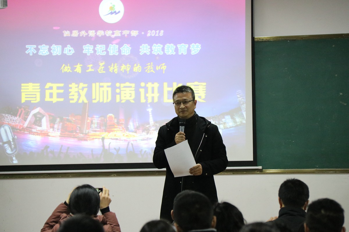 為全面貫徹落實十九大提出的立德樹人根本要求,不忘初心,牢記使命,建設一支合格的仙外教師團隊,共筑教育夢,1月7日晚上,仙居外語學校高中部舉行了以“做有工匠精神的教師”為主題的青年教師演講比賽。本次活動特邀請仙居縣社科聯(lián)副主席、臺州市宣講協(xié)會會員吳敏;仙居縣委宣傳部干部、臺州市宣講協(xié)會會員周筱翔;仙居縣教育工會副主席、省級普通話水平測試員、臺州市宣講協(xié)會會員應漢松到場指導。
