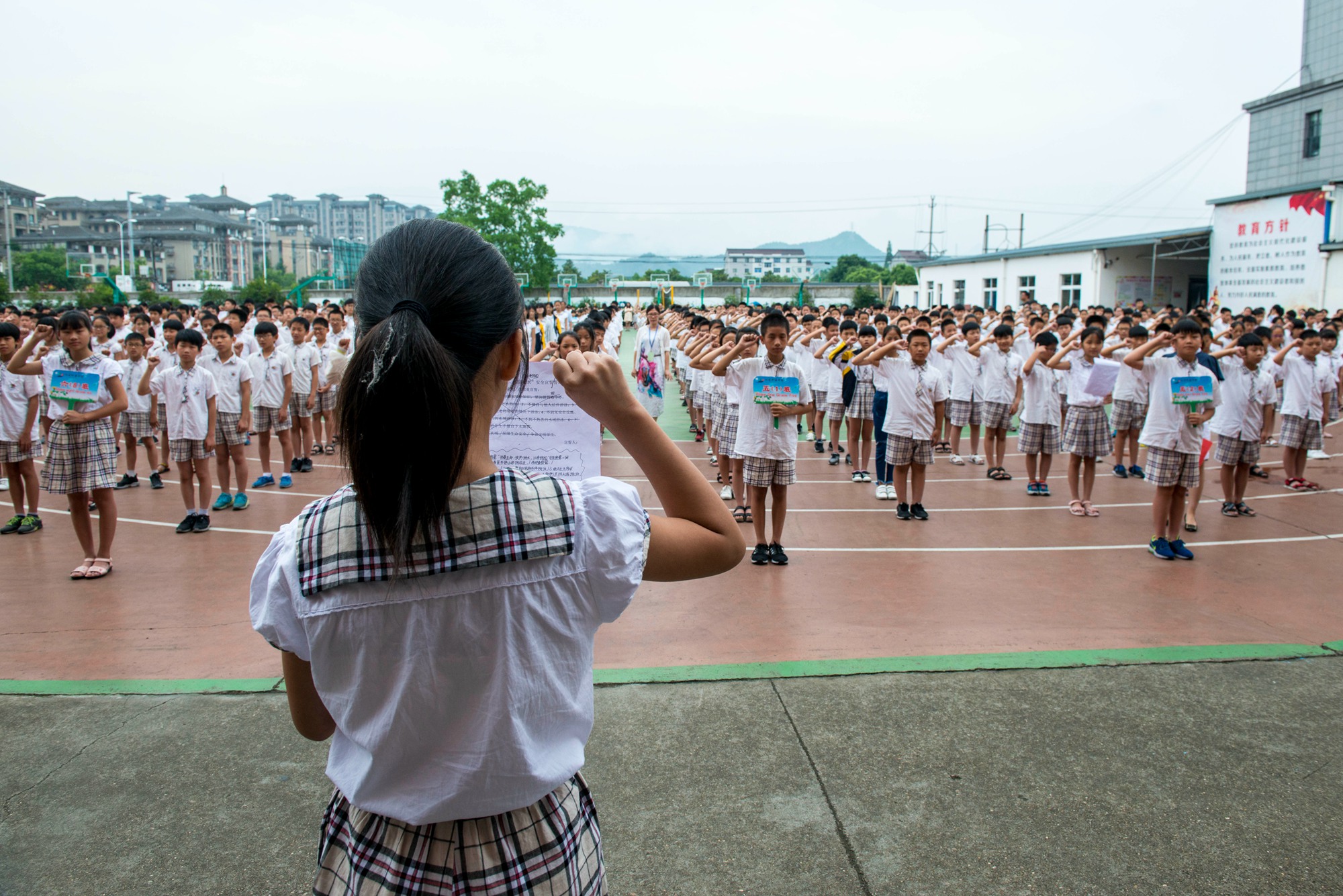 升國旗儀式后,學(xué)生代表就“珍愛生命、預(yù)防溺水”這一主題進(jìn)行國旗下講話。