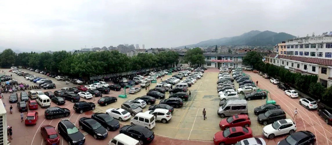 來(lái)自全縣各地的學(xué)生和他們家長(zhǎng)將校園擠的滿滿,車(chē)流、人流相互交集,構(gòu)成了一道校園的特殊風(fēng)景。