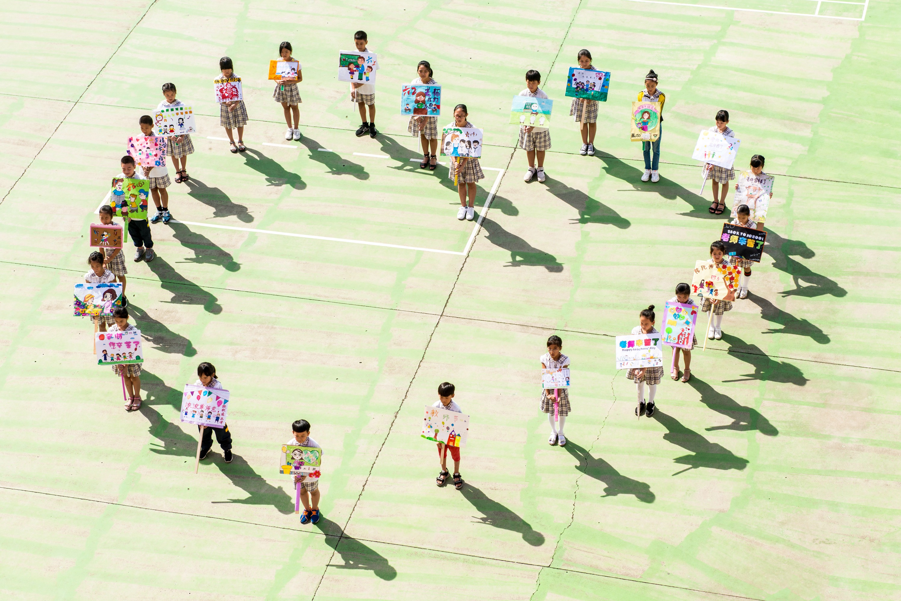 如果說(shuō),往常叫醒老師們的是夢(mèng)想與責(zé)任,那今天讓老師們從夢(mèng)鄉(xiāng)醒來(lái)的定是花香與期待。早上八點(diǎn),教師節(jié)一日劇本正式開(kāi)啟。熟悉的音樂(lè)響起,孩子們手拿手工制作的班牌入場(chǎng),各個(gè)班牌風(fēng)格不同,愛(ài)意相同,不約而同地訴說(shuō)著對(duì)老師的祝福與愛(ài)意:拿起畫(huà)筆畫(huà)下您曾經(jīng)教會(huì)我的線條,寫(xiě)下我對(duì)您最真摯的祝福。活動(dòng)開(kāi)始了,六年級(jí)孩子們?yōu)槔蠋焸儙?lái)了詩(shī)歌朗誦,一聲又一聲的老師謝謝您,帶動(dòng)著全場(chǎng)的氣氛,全校孩子們跟著一起抒發(fā)對(duì)老師的感謝,并獻(xiàn)上深深的鞠躬,緊接著,全場(chǎng)合唱《感恩的心》,感謝老師幾年如一日的照顧,感謝老師課堂上一筆一畫(huà)的教導(dǎo),感謝老師無(wú)私的付出……歌聲結(jié)束后,各班依次向正副班主任致謝敬禮,感謝聲此起彼伏,猶如波浪沖擊耳畔,直擊內(nèi)心深處。最后,孩子們將準(zhǔn)備已久的禮物送給老師們。