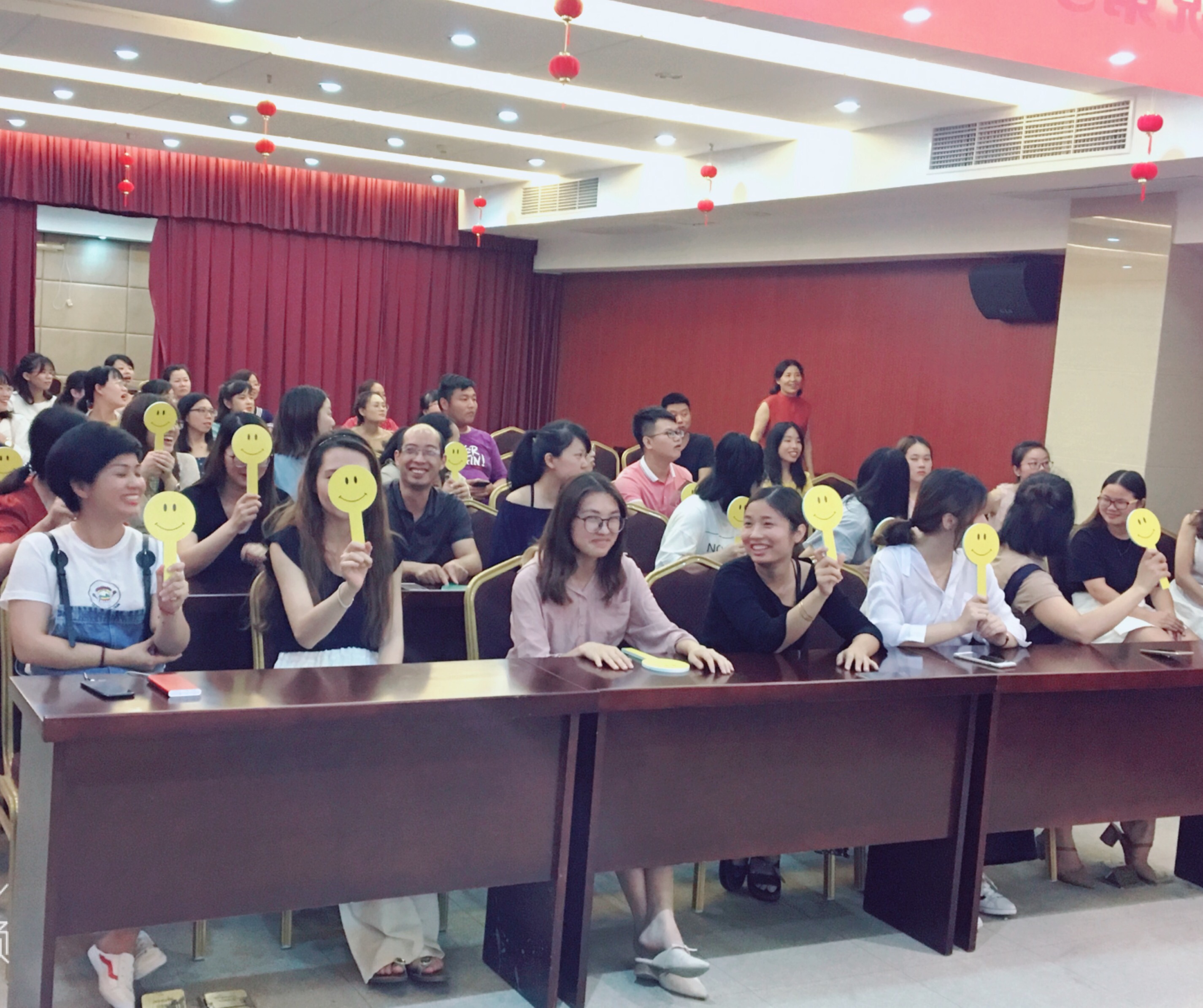 白天悄悄過(guò)去,暑氣漸消,屬于老師們的大party就要開(kāi)始啦!歌王爭(zhēng)霸賽在晚上六點(diǎn)準(zhǔn)時(shí)拉開(kāi)序幕,老師們不僅是講課好手,唱歌也是一絕,臺(tái)風(fēng)歌聲各個(gè)能壓陣?!冻啥肌贰缎⌒疫\(yùn)》《盛夏的果實(shí)》《一年級(jí)》等一首首歌曲輪番上場(chǎng),為觀眾們帶來(lái)了一場(chǎng)聽(tīng)覺(jué)盛宴。比賽分為初賽,卡位賽,決賽三個(gè)部分。評(píng)委老師們面對(duì)唱歌高手們,既投入其中又難以抉擇,最后在十四位教師決勝出冠軍、亞軍、季軍三位老師,授予獎(jiǎng)杯。比賽中間還穿插著猜歌名的小游戲,猜中歌名的老師,通過(guò)踩氣球的方式,獲得小禮品。現(xiàn)場(chǎng)氣氛熱烈,歌聲不斷,笑聲不斷,實(shí)屬老師們的減壓神器。