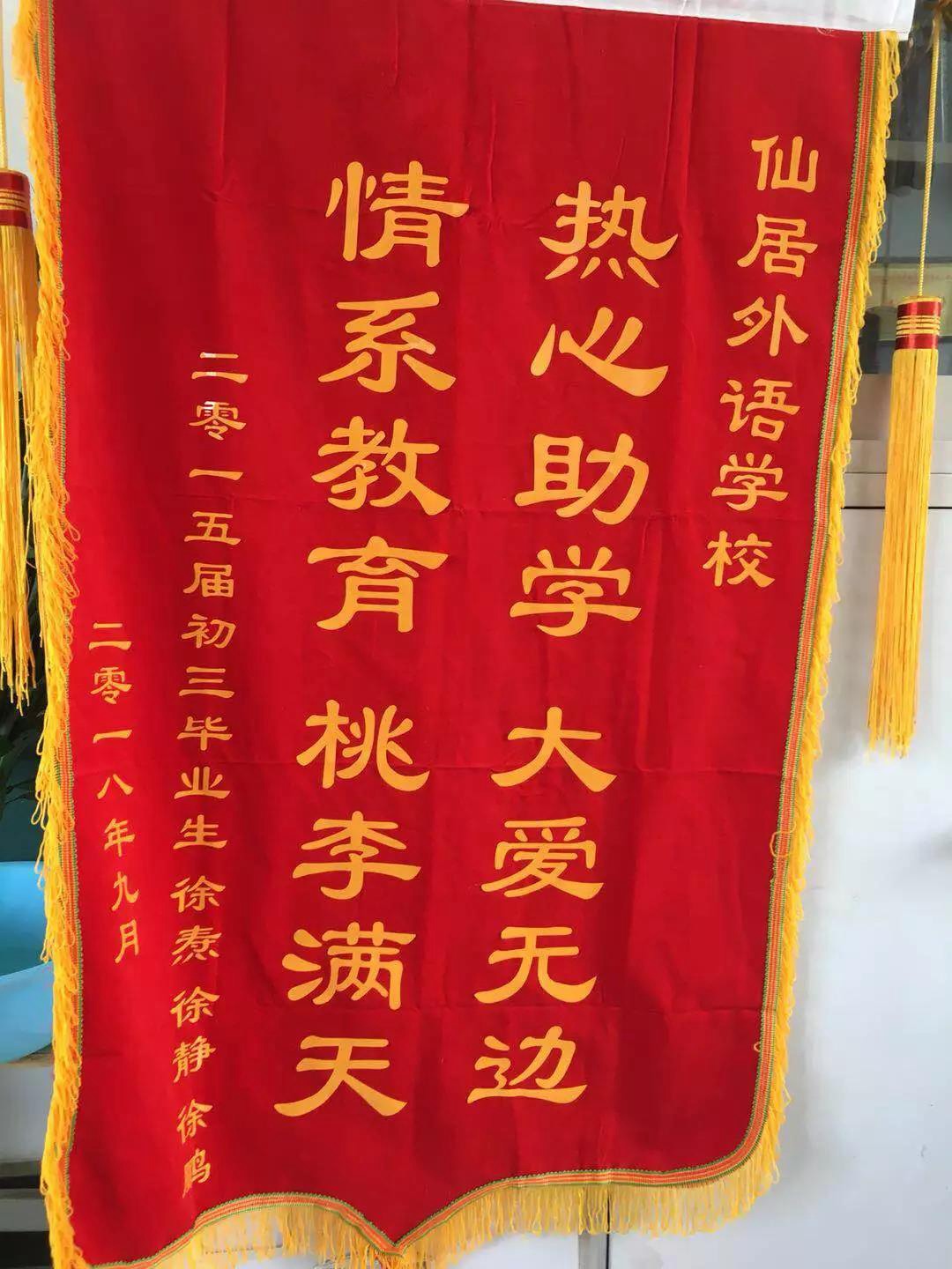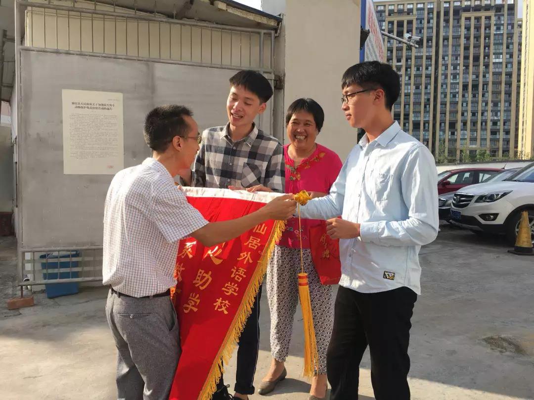 本站訊 2018年9月10日,第34個(gè)教師節(jié),仙居外語(yǔ)學(xué)校初中部迎來(lái)了兩位昔日的學(xué)生,他們是2015屆初三畢業(yè)生徐燾和徐鵬。在母親的陪同下,在這個(gè)特殊的日子里,他們帶著錦旗,給學(xué)校領(lǐng)導(dǎo)和恩師送上了最真摯的感謝和節(jié)日的祝福。