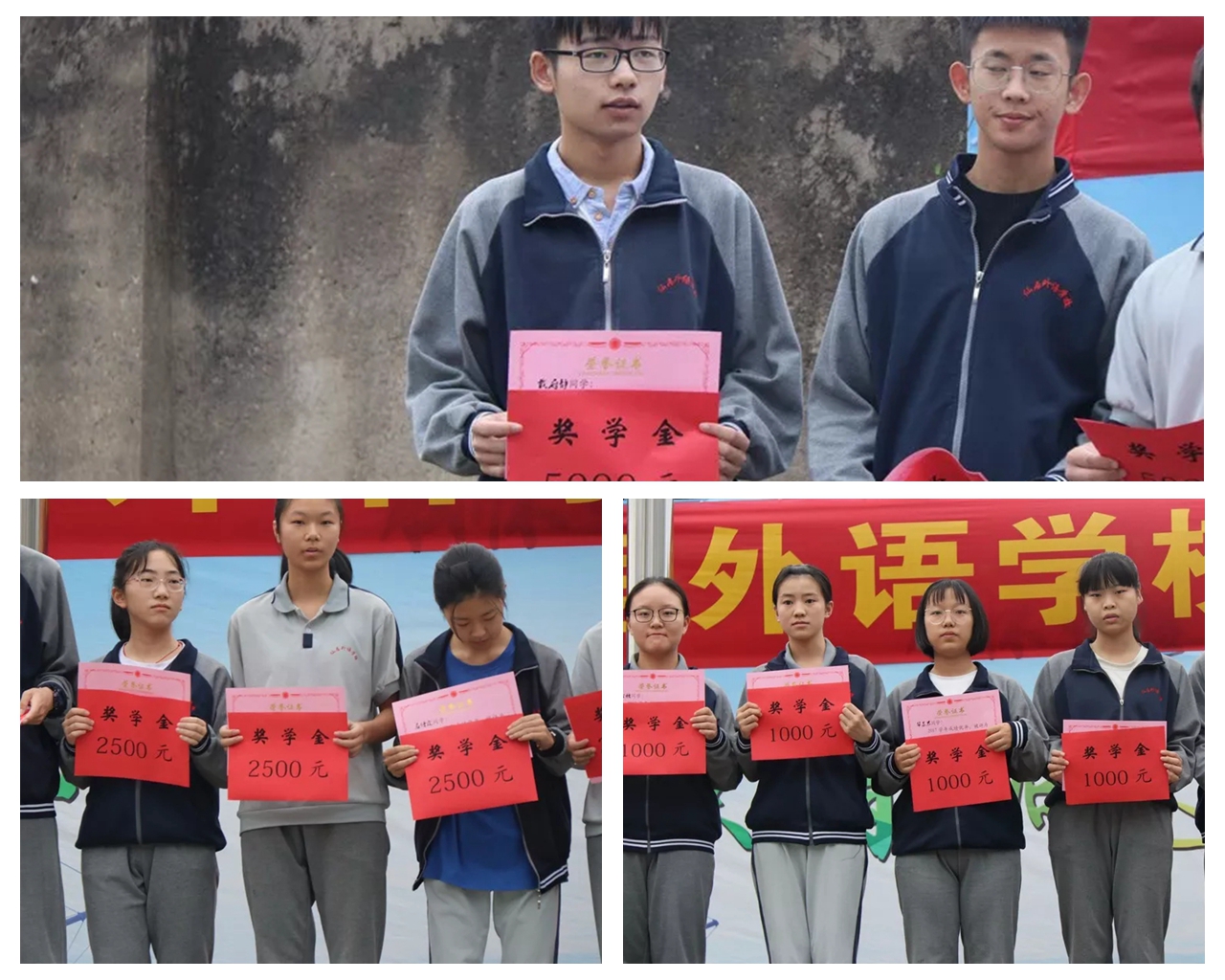 外語(yǔ)學(xué)校為激勵(lì)學(xué)生努力學(xué)習(xí),奮發(fā)向上,單高中部每年就拿出一百多萬(wàn)對(duì)學(xué)生進(jìn)行獎(jiǎng)勵(lì),本次的頒獎(jiǎng)涉及仙外學(xué)習(xí)優(yōu)秀之星共計(jì)45人,獎(jiǎng)學(xué)金5000元/人;仙外學(xué)習(xí)希望之星共計(jì)62人,獎(jiǎng)學(xué)金2500元/人;仙外學(xué)習(xí)進(jìn)步之星共計(jì)55人,獎(jiǎng)學(xué)金1000元/人。