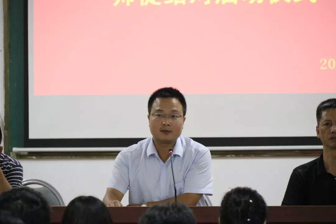 本站訊 9月4日晚,仙居外語學(xué)校高中部舉行“青藍(lán)工程”師徒結(jié)對(duì)啟動(dòng)儀式,師徒70多人參加。高中部校長(zhǎng)王衛(wèi)明、校助鄒遠(yuǎn)義、教師專業(yè)發(fā)展中心主任徐冬和出席了結(jié)對(duì)儀式,共同見證29對(duì)師徒“喜結(jié)良緣”。會(huì)議由教師專業(yè)發(fā)展中心副主任張豐明老師主持,現(xiàn)場(chǎng)氣氛隆重而溫馨。