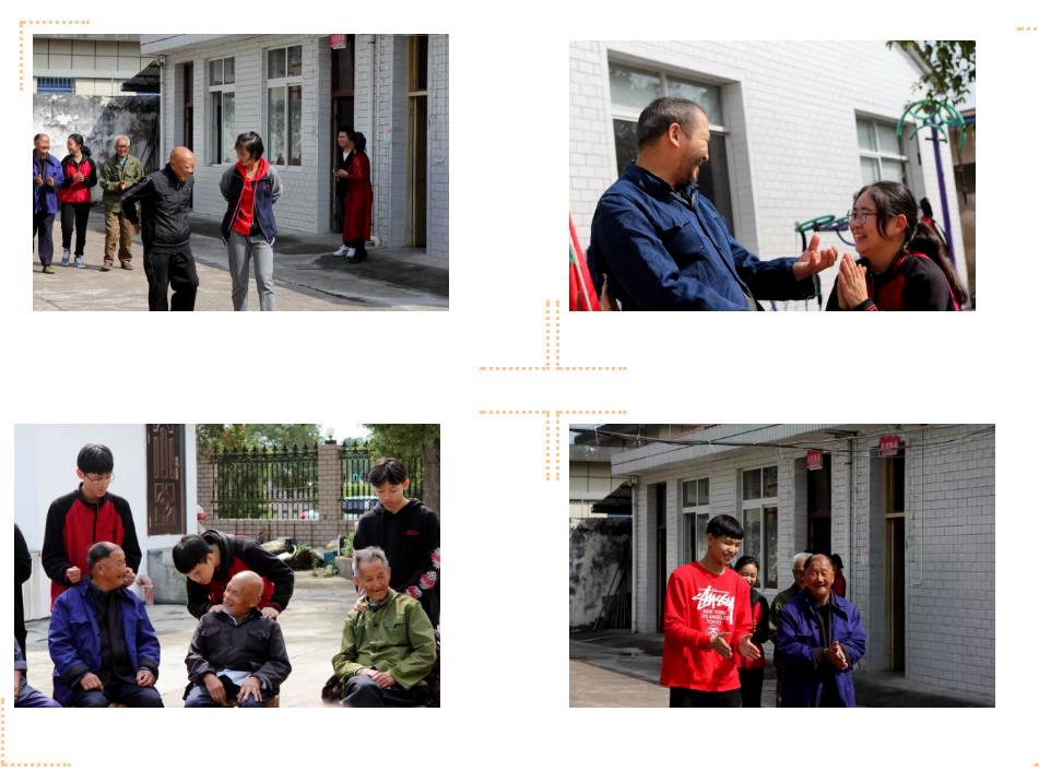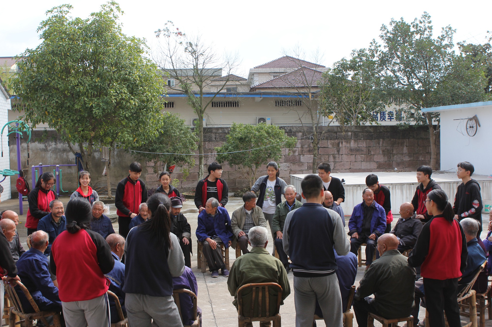 大家將帶來的瓜果牛奶等零食分與老人們,老人們的臉上洋溢著熱情而幸福的微笑。有些老人在看到我們的那一刻還開心地拍起了手,整個房間里充滿了幸福的味道。我們坐在老人身邊,看同學們準備好的表演,拉起老人的手嘮起了家常。過后,大家圍坐在院子里,溫暖的陽光下,同學們自覺給老人按起了摩,敲起了腳。爺爺奶奶們生怕我們累著,嘴里不住的念叨著“可以了,可以了”。在同學們的堅持下,我們一邊按摩一邊聽著老人們對我們的關懷,氣氛溫馨而美好。我們帶著老人唱起了國歌,有些老人還自告奮勇唱起了戲,在咿咿呀呀的戲曲聲中,我們的敬老院之行完美結束了。