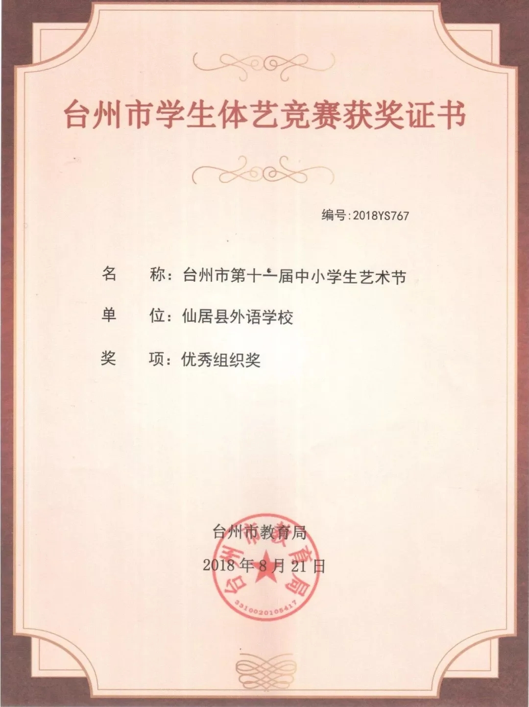 近日,臺州市第十一屆中小學生藝術節(jié)現(xiàn)場展演在天臺縣舉行,我校選送節(jié)目《北地王》等分獲一、三等獎。