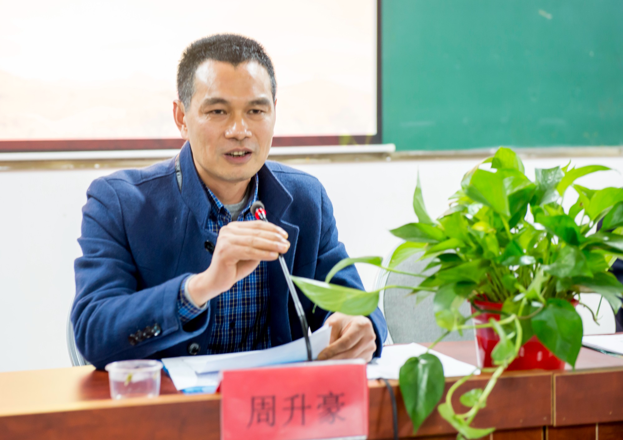 18點40分,大會在嘹亮的國歌聲中開啟,校黨支部書記周升豪致開幕詞。