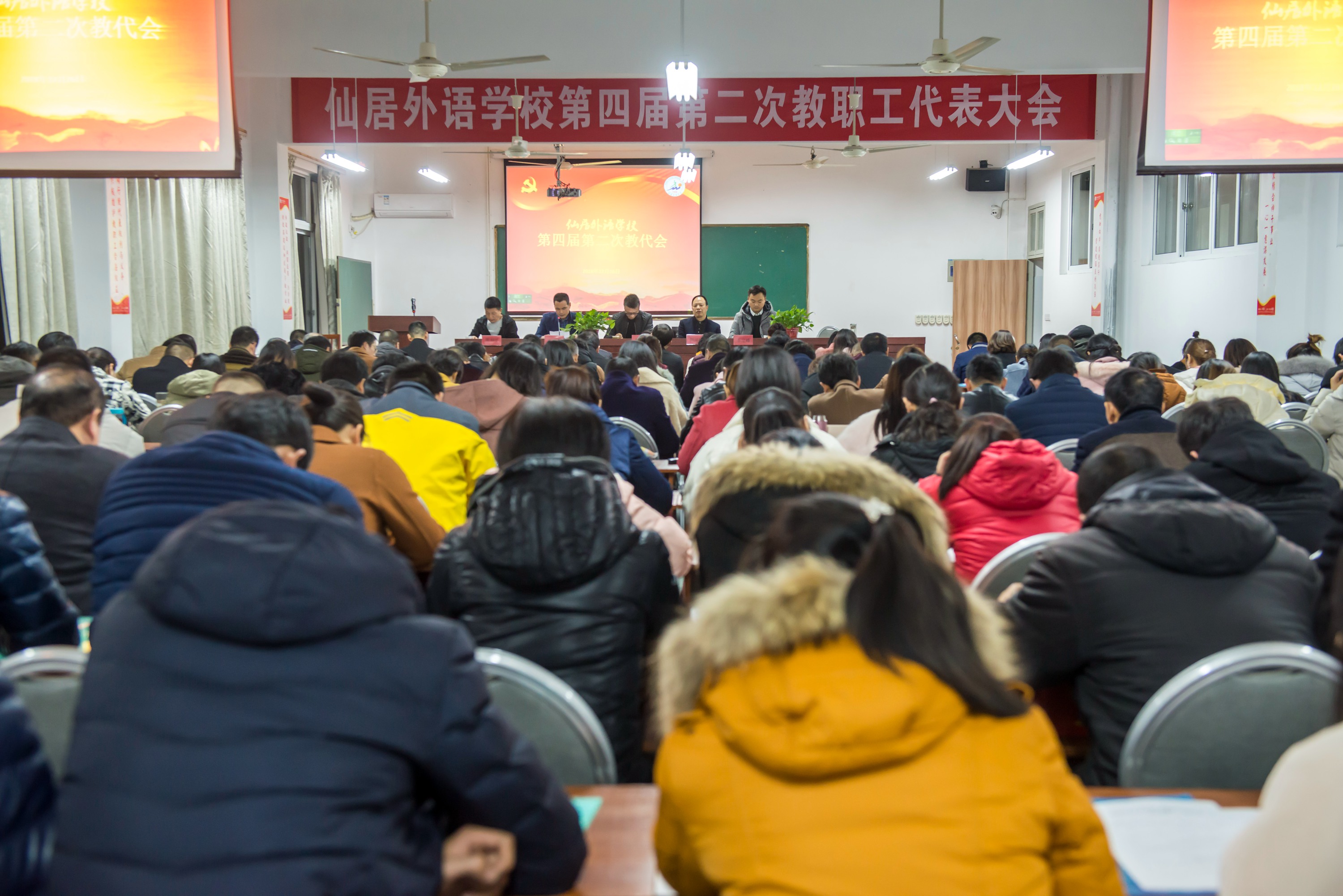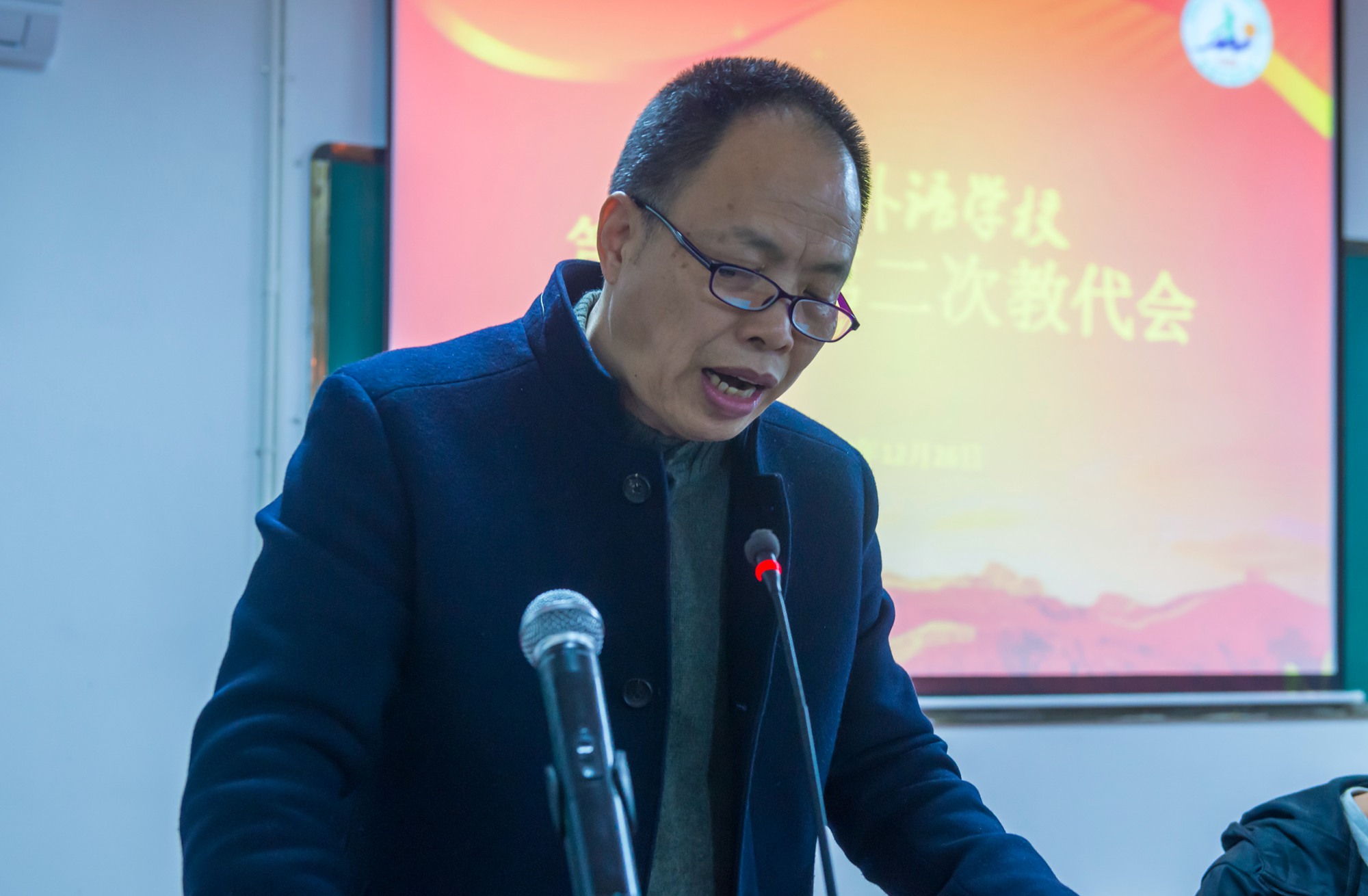 本站訊 新時代賦予新使命,新時代召喚新征程。2018年12月26日,我校第四屆第二次教師代表大會在高中部隆重召開。大會主題是:把握新契機,實現(xiàn)大發(fā)展,為創(chuàng)建品牌外語努力奮斗??h教育工會副主席應(yīng)漢松應(yīng)邀出席本次大會。170多名教職工在此履行自己神圣的職責(zé)。
