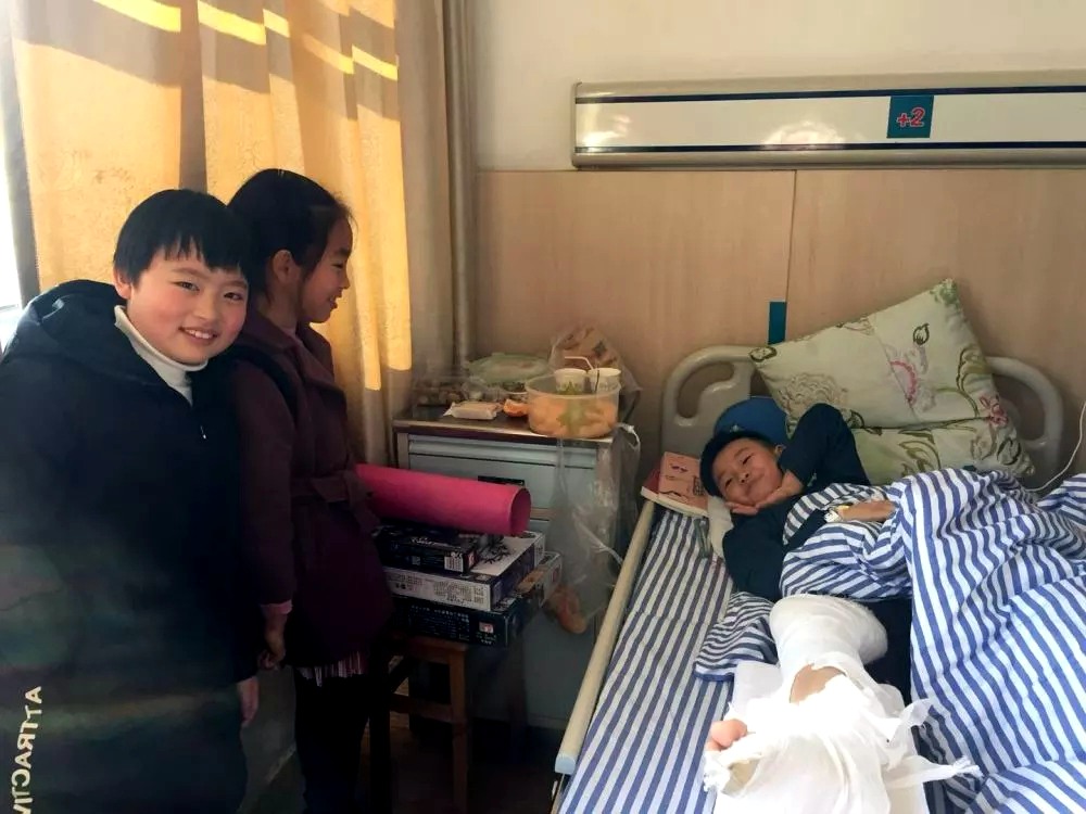 寒假到了,同學們帶著快樂的心情回到家中,享受假期,可是三2班里的一位同學,卻發(fā)生了小事故。受了傷的他只能待在醫(yī)院里。同學們得知這個消息,一起去醫(yī)院看望他,還給他帶去了親手制作的畫。同學們的到來使整個病房有了歡樂的氣息。