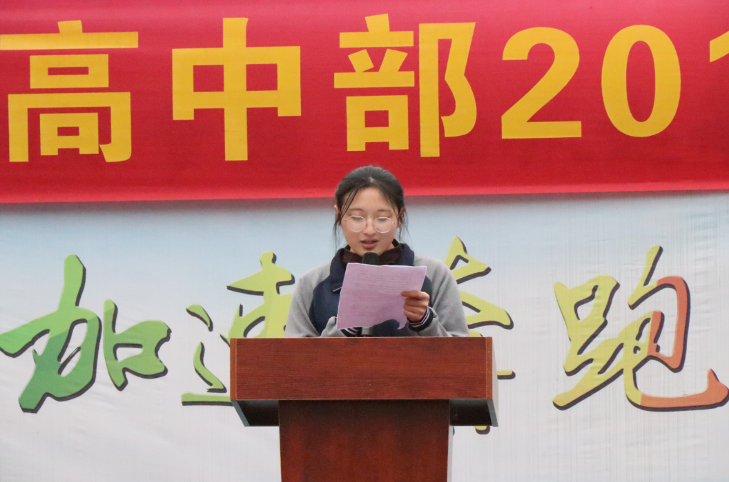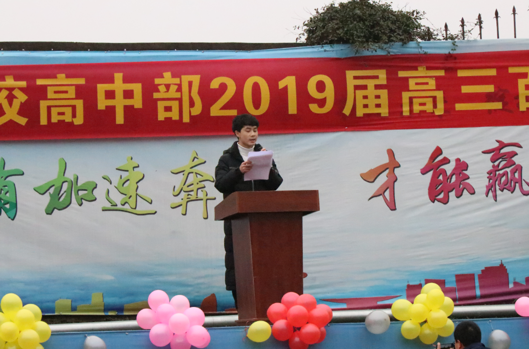 學(xué)生代表高三2班楊容霞同學(xué)回憶了三年寒暑拼搏的經(jīng)歷,她號(hào)召全體同學(xué),在這剩下的100多天里,奮斗青春,不負(fù)眾望,不留遺憾。