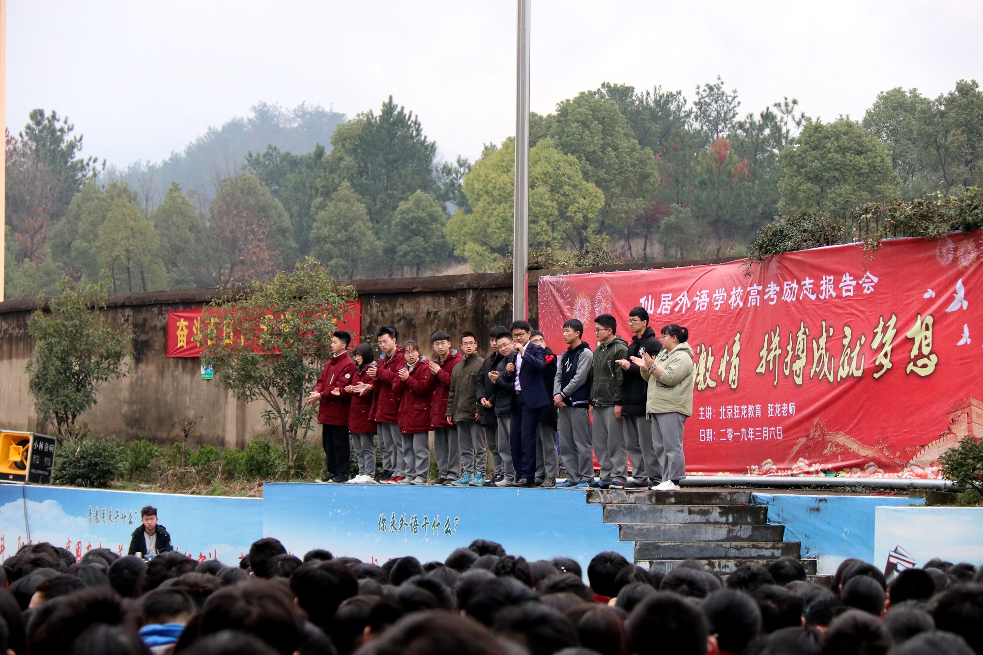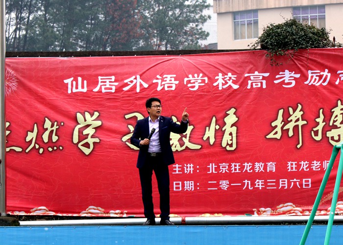 “雷動(dòng)風(fēng)行驚蟄戶,天開(kāi)地辟轉(zhuǎn)鴻溝。”3月6日上午,在距高考不足百天的日子里,仙居外語(yǔ)學(xué)校高中部邀請(qǐng)到狂龍教育創(chuàng)始人狂龍老師為進(jìn)入沖刺階段的高三學(xué)子們帶來(lái)了一場(chǎng)震撼人心的勵(lì)志活動(dòng)。高一高二年級(jí)同學(xué)也參加了本次活動(dòng),為高三的學(xué)長(zhǎng)學(xué)姐們加油鼓勁,現(xiàn)場(chǎng)氣氛熱烈,群情激昂。