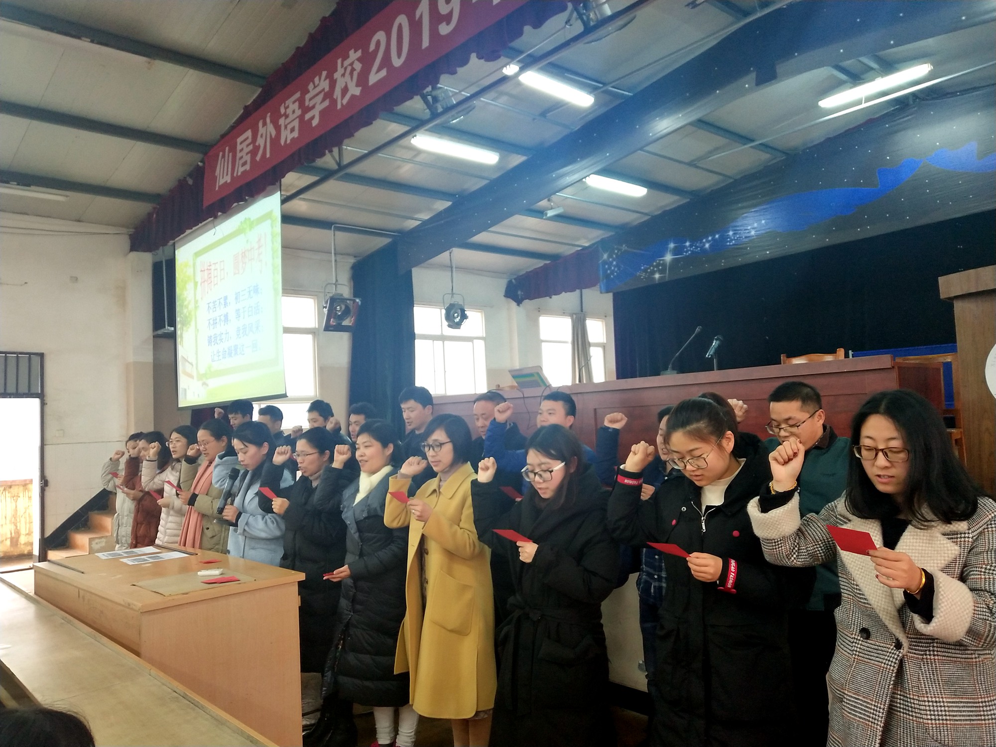 李柳蒙老師帶領(lǐng)著全體初三教師,在全校初三學(xué)生面前鄭重宣誓:忠于職守,精誠團(tuán)結(jié);言傳身教,樂于奉獻(xiàn);刻苦鉆研,燃燒激情;奮力決戰(zhàn)中考,再創(chuàng)仙外輝煌!