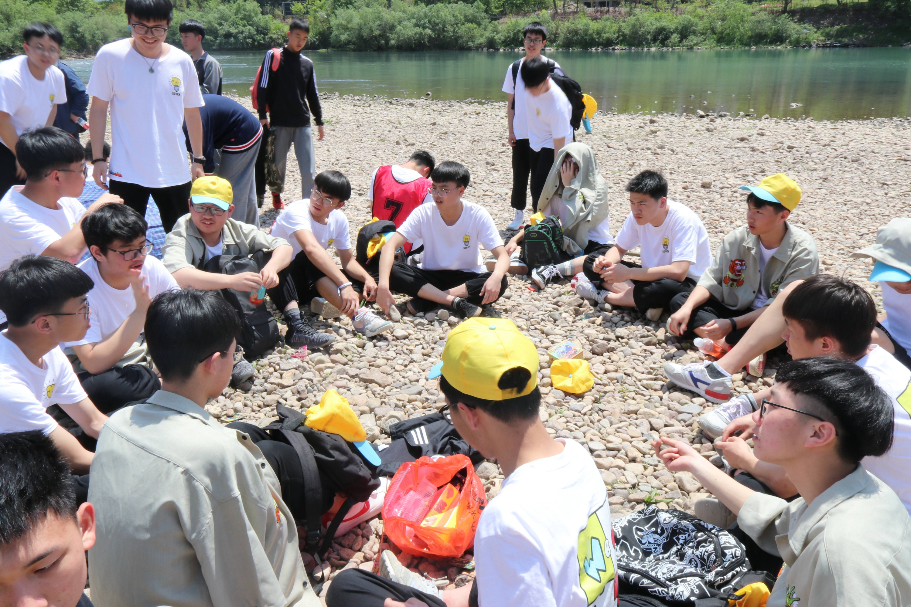 隊伍抵達(dá)目的地,清口園大橋下溪灘