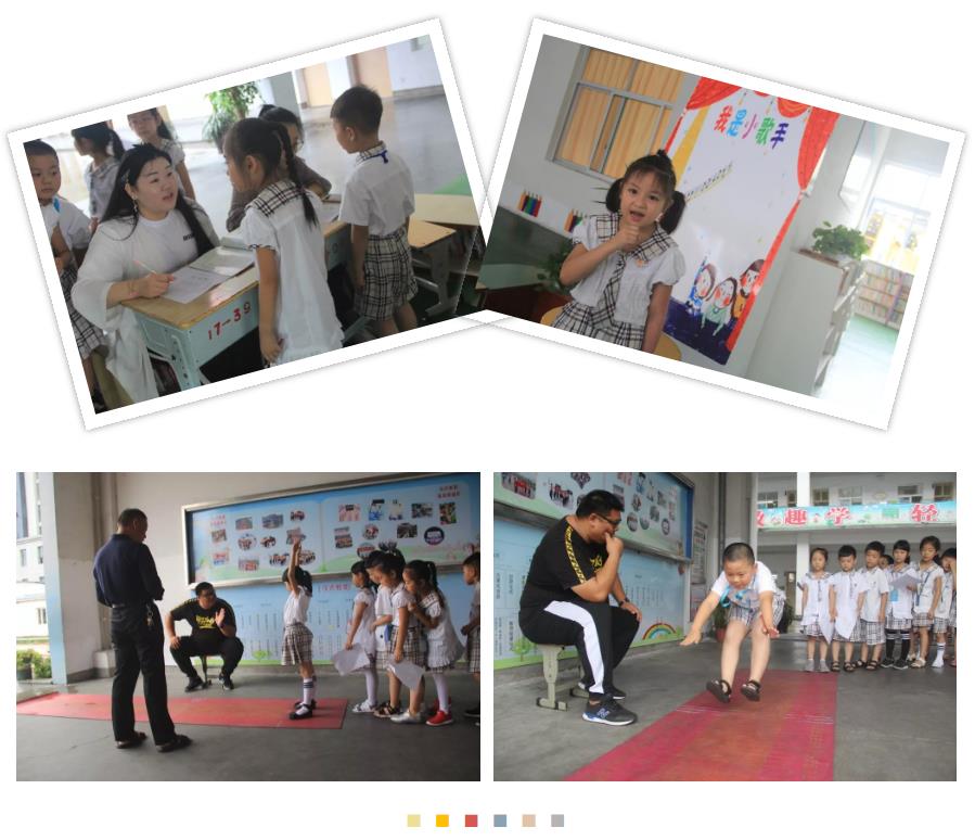 樂考還藏在體藝樂園里。一年級(jí)小朋友發(fā)揮大膽有趣的想象,剪出了形狀各異的窗花,還小心地放進(jìn)口袋里,說要回家送給媽媽。二年級(jí)小朋友更加心靈手巧了,一會(huì)兒就剪出了栩栩如生的蝴蝶,一只只蝴蝶在窗邊排成了長長的隊(duì)伍,好像在和小朋友們比誰笑得更甜呢。跳遠(yuǎn)、跳高難不倒小朋友們,歌手小舞臺(tái)小朋友們也不怯場,畢竟大家伙去年都參加過校園十佳歌手的海選,已經(jīng)很有上臺(tái)經(jīng)驗(yàn)了。