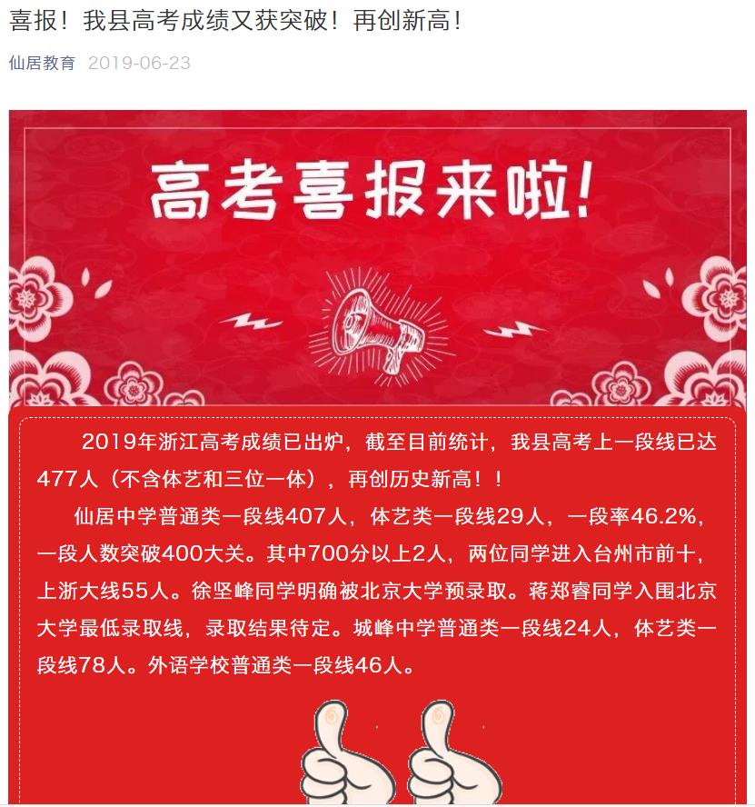 2019年浙江高考成績出爐,我校2019年高考取得優(yōu)異成績: