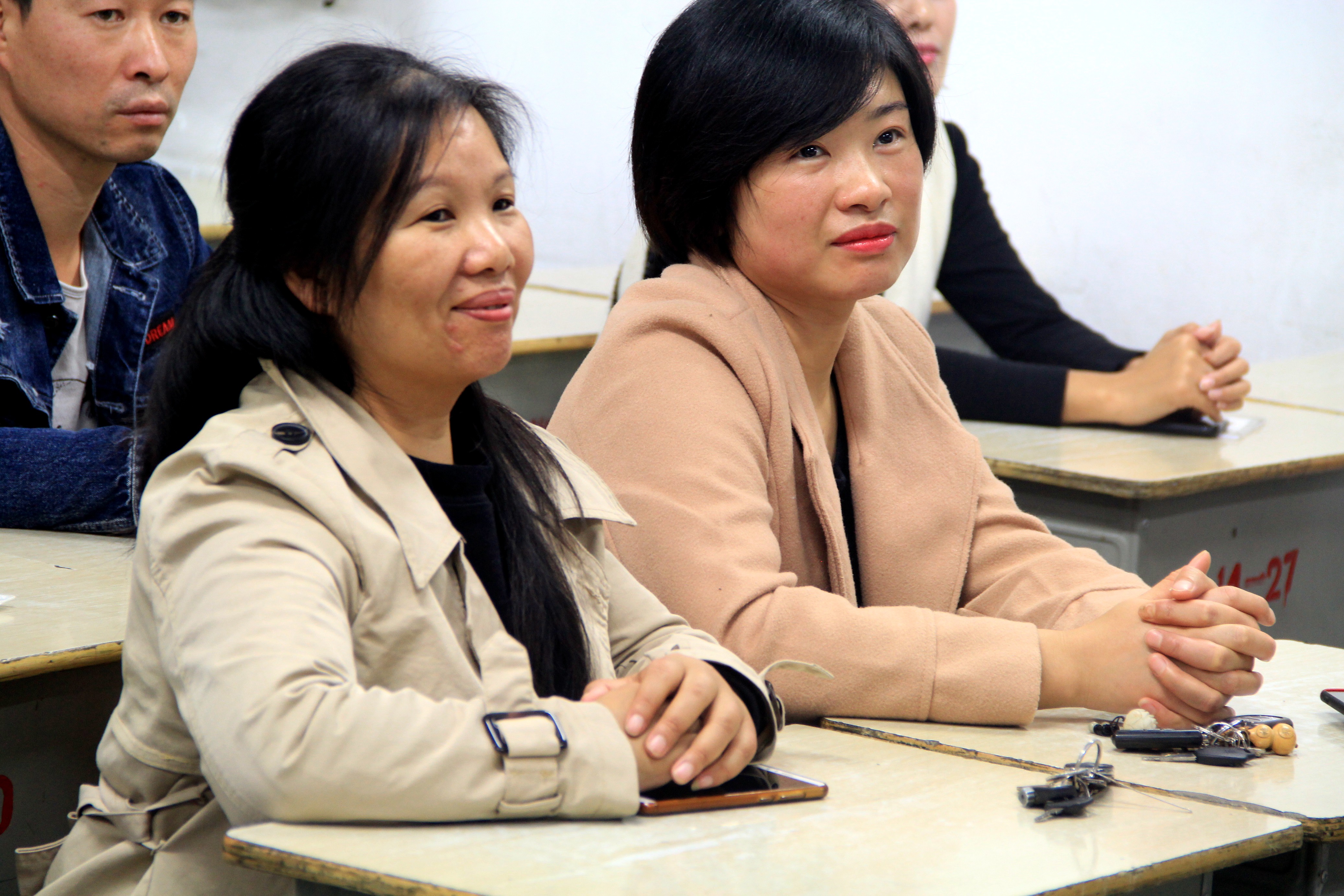 王老師在向家長(zhǎng)們介紹了家庭教育學(xué)校外語(yǔ)小學(xué)從本學(xué)期開(kāi)出精品班的課程后,請(qǐng)出了今晚精品課課程講師陳敏燕老師。