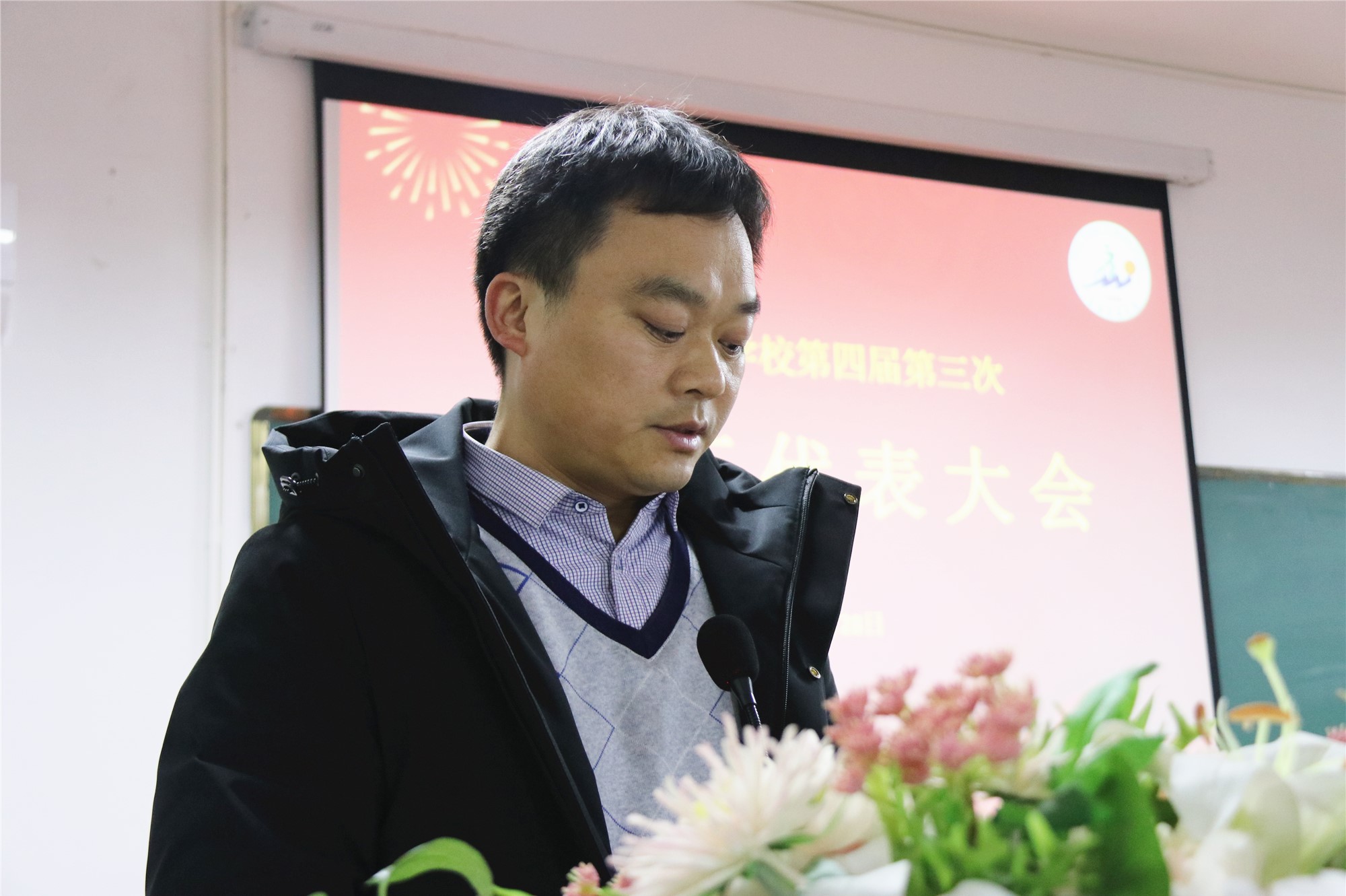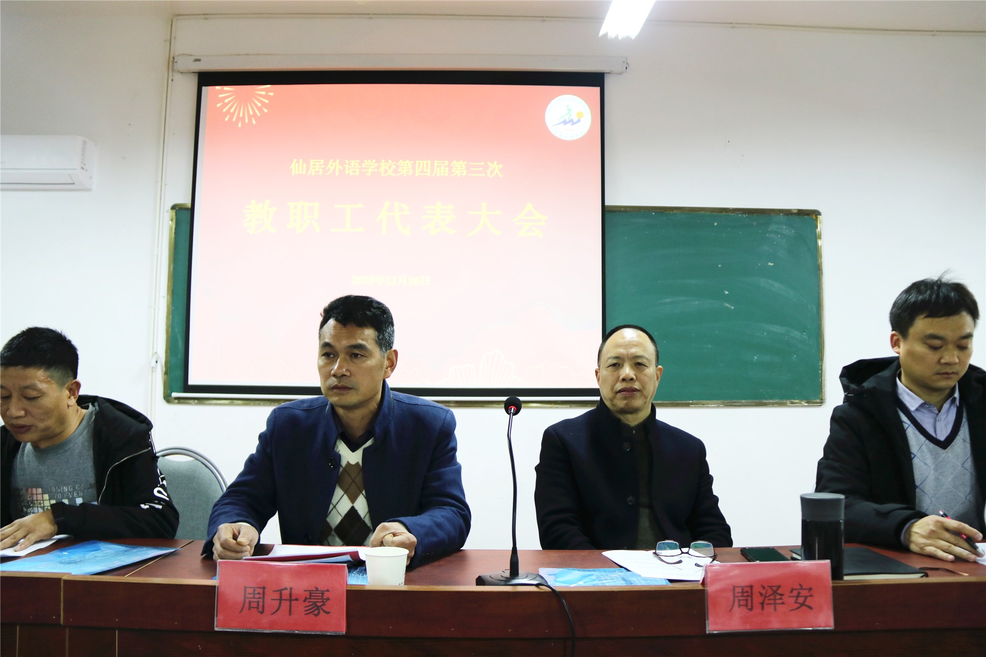 學(xué)校黨支部書記周升豪、總校執(zhí)行校長(zhǎng)周澤安、校工會(huì)主席李寶峰出席教代會(huì)