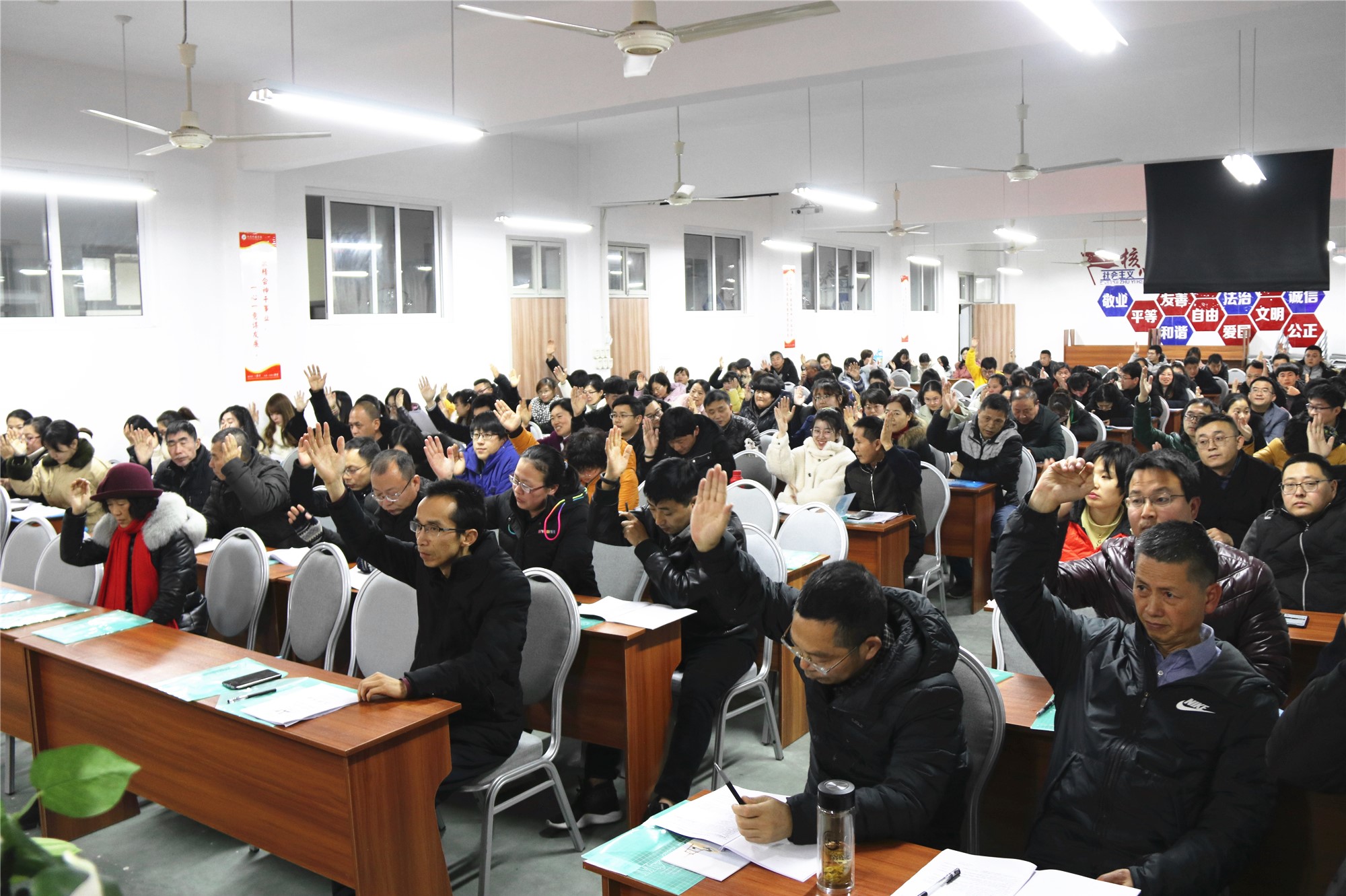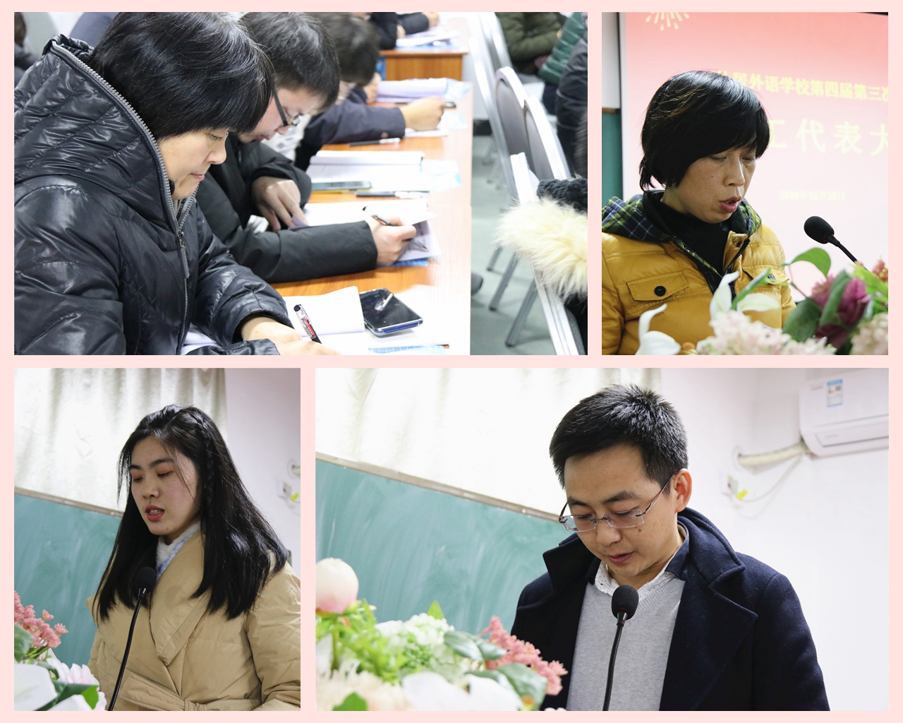 仙外校園網(wǎng)訊(xjfls.com) 凝心聚力回眸2019,滿懷豪情展望2020。12月28日,仙居外語學(xué)校第四屆第三次教職工代表大會(huì)在我校高中部隆重召開,本次教代會(huì)主題為:不負(fù)使命 勇于擔(dān)當(dāng) 凝心聚力 搶抓機(jī)遇 開啟外語發(fā)展新征程。學(xué)校黨支部書記周升豪、總校執(zhí)行校長(zhǎng)周澤安、校工會(huì)主席李寶峰出席本次會(huì)議,會(huì)議由工會(huì)副主席陳利華主持,共144名代表在此履行自己神圣的職責(zé)。
