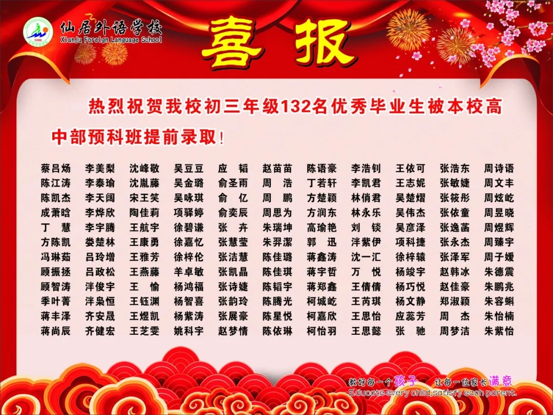 1. 根據(jù)《招生通知》九年一貫制學(xué)校的小學(xué)部學(xué)生可以直升其初中部。仙居外語(yǔ)學(xué)校小學(xué)部畢業(yè)生可直升初中部,并在全縣初中招生錄取前一次性予以全部錄取,不用參加電腦隨機(jī)派位(電腦搖號(hào))。