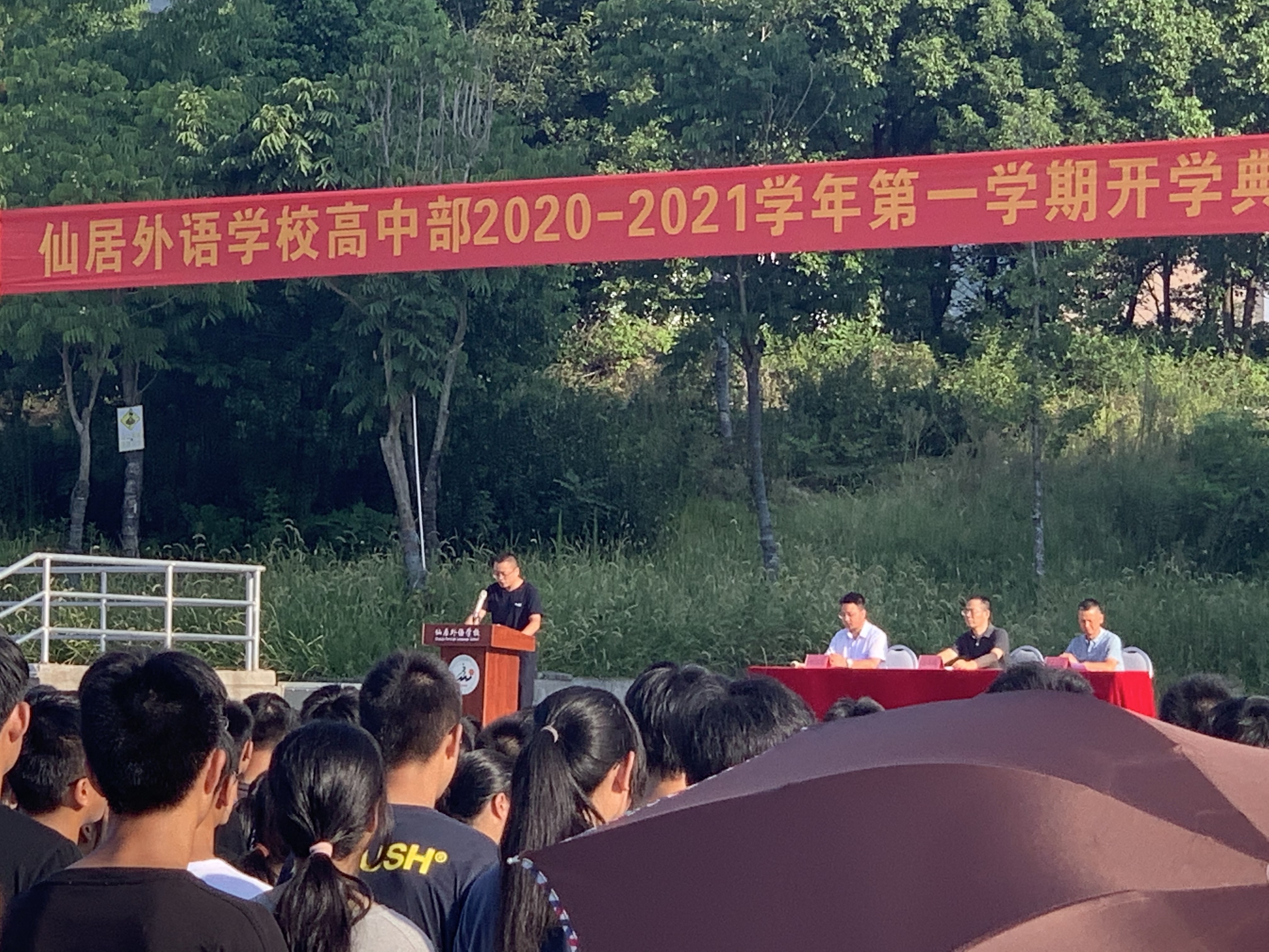 王志龍校長首先為新學(xué)期致辭。他代表學(xué)校對進(jìn)入仙外大家庭的高一新同學(xué)表示熱烈歡迎。回顧了上學(xué)年學(xué)校教育教學(xué)取得的好成績,王校長對辛勤耕耘的全校教職員工表示感謝,也對努力學(xué)習(xí)的同學(xué)們給予肯定!