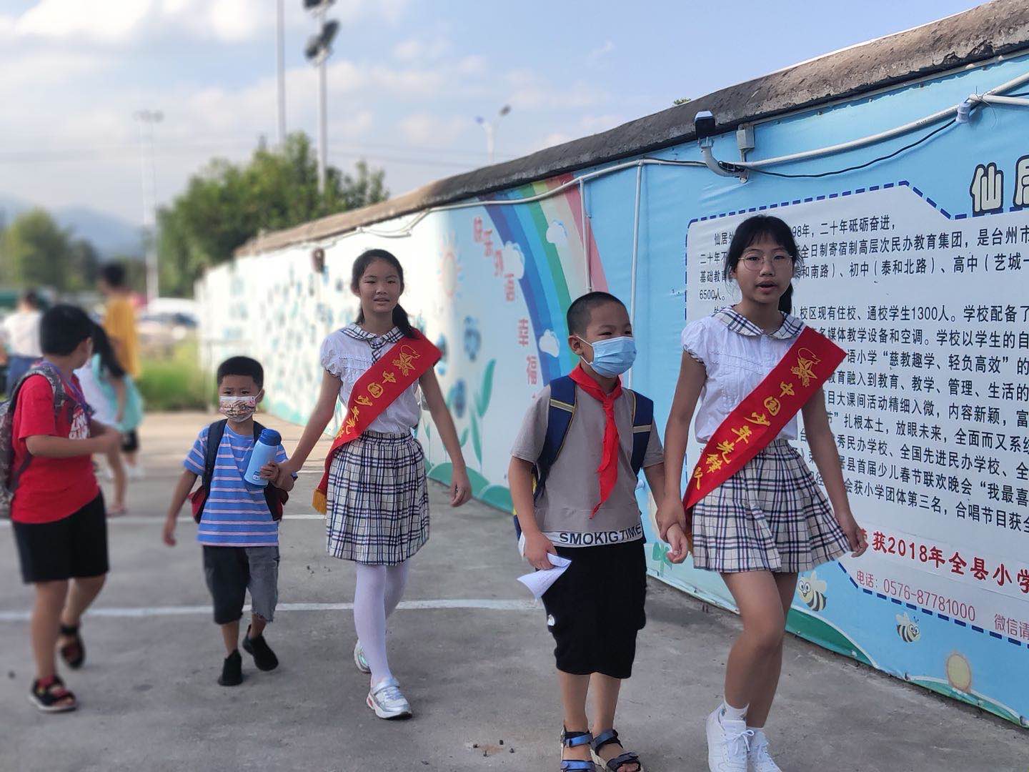上午8點,當(dāng)一年級新生到學(xué)校報到時,老師和高年級的同學(xué)早已等候在校門口迎接,等新生測量完體溫后,學(xué)生們手牽手把新同學(xué)迎到教室。
