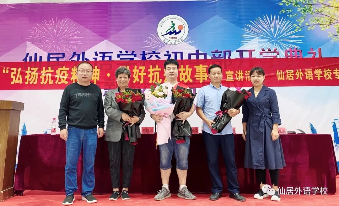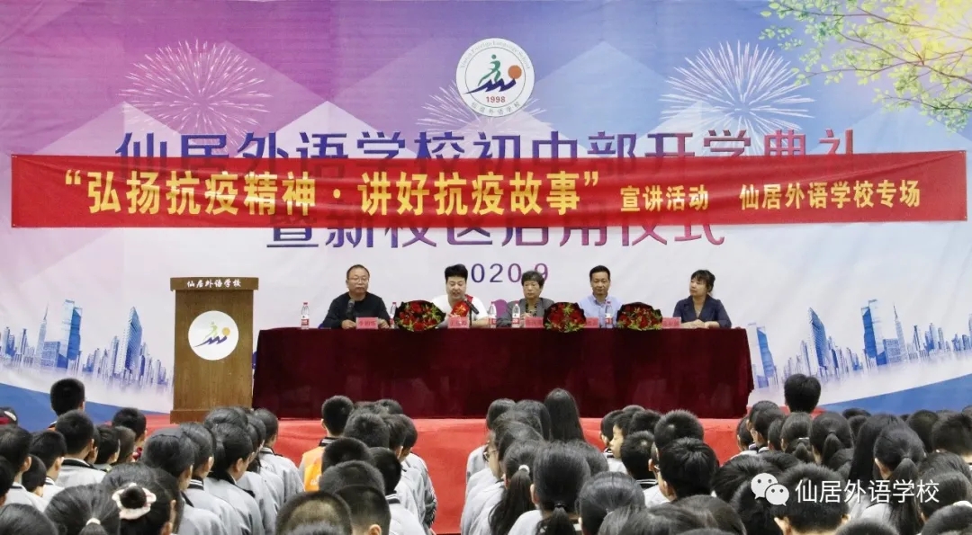 仙外校園網(wǎng)訊 為深入學(xué)習(xí)貫徹習(xí)總書記關(guān)于疫情防控工作的系列重要講話,激勵(lì)和引領(lǐng)學(xué)生自覺弘揚(yáng)和踐行偉大的抗疫精神。9月19日下午,仙居縣關(guān)心下一代工作委員會、仙居縣教育局、仙居縣衛(wèi)生健康局聯(lián)合舉辦的"弘揚(yáng)抗疫精神·講好抗疫故事"宣傳活動,第一站來到了仙居外語學(xué)校。仙居縣關(guān)工委宣講團(tuán)副團(tuán)長、全國勞模、縣關(guān)工委兼職副主任施探薇,縣中醫(yī)院黨委成直兵委員,援鄂抗疫英雄、縣中醫(yī)院主治醫(yī)師王建海,校團(tuán)委副書記吳亞麗參加宣講,活動由李朝輝副校長主持。