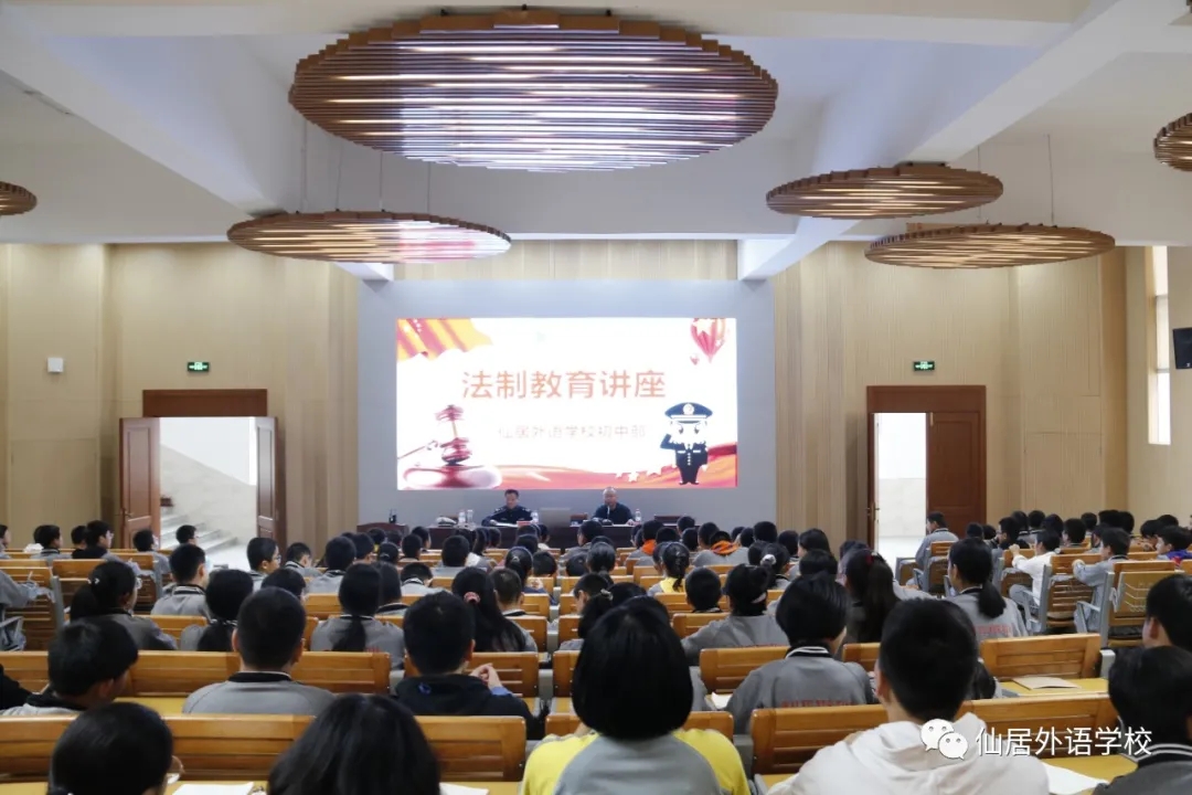 仙外校園網(wǎng)訊 為進(jìn)一步增強(qiáng)法制意識(shí),讓法制走進(jìn)校園,讓同學(xué)們自覺(jué)遵紀(jì)守法,做一個(gè)知法、懂法、守法的合格中學(xué)生。2020年10月17日下午,我校邀請(qǐng)了縣公安局交警隊(duì)李桂義、張均程兩位警官來(lái)到新校區(qū)的階梯教室,為我們進(jìn)行了法制教育講座。本次講座由政教副校長(zhǎng)李朝輝主持,初一年級(jí)學(xué)生代表們參加了講座。