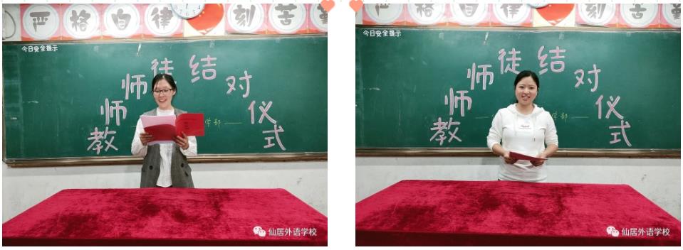 校長(zhǎng)助理柯飛萍宣讀班主任師徒結(jié)對(duì)名單及師徒雙方職責(zé)。