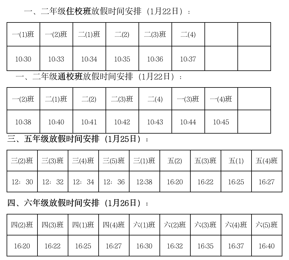1、放假時間安排表
